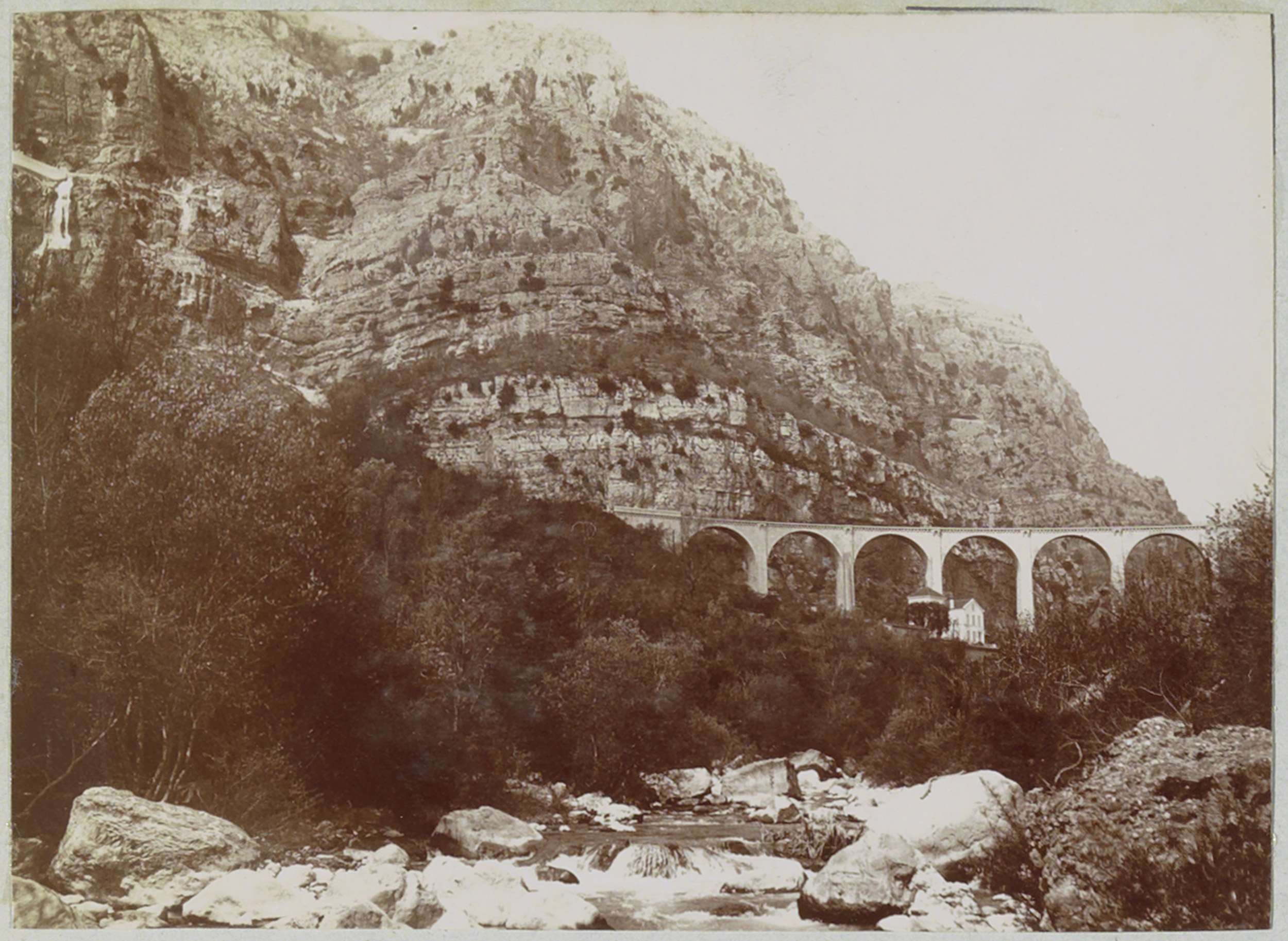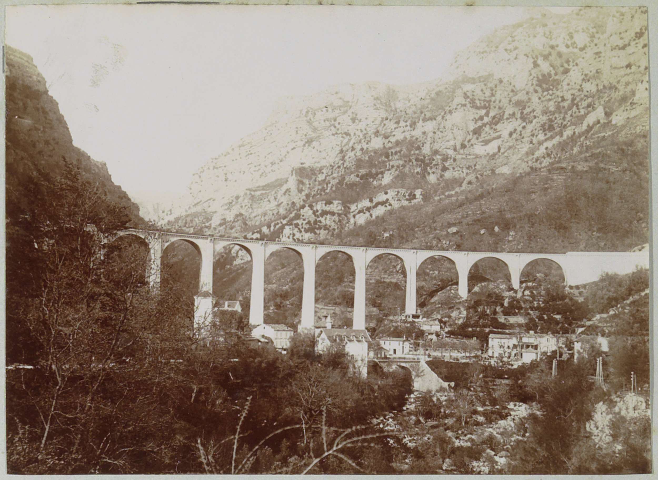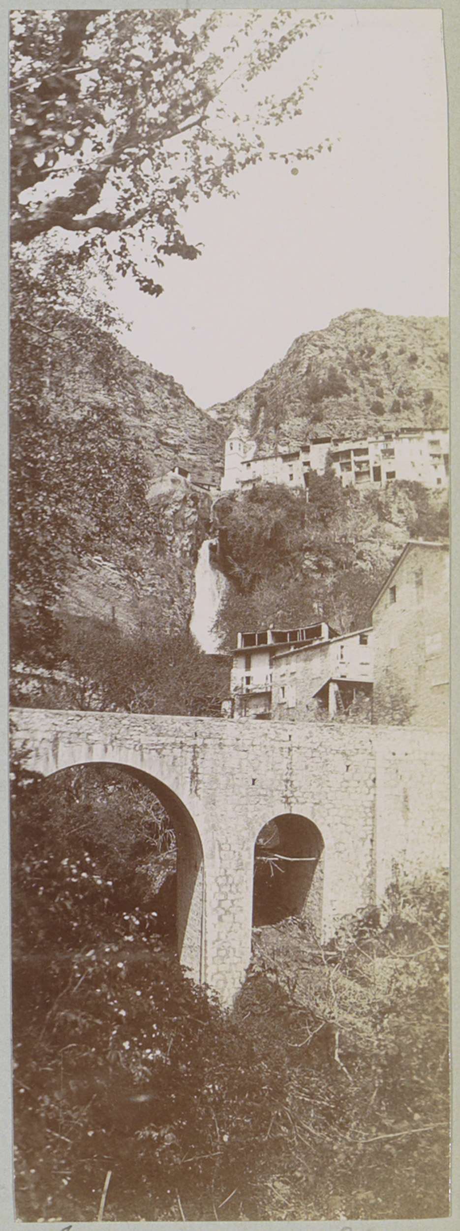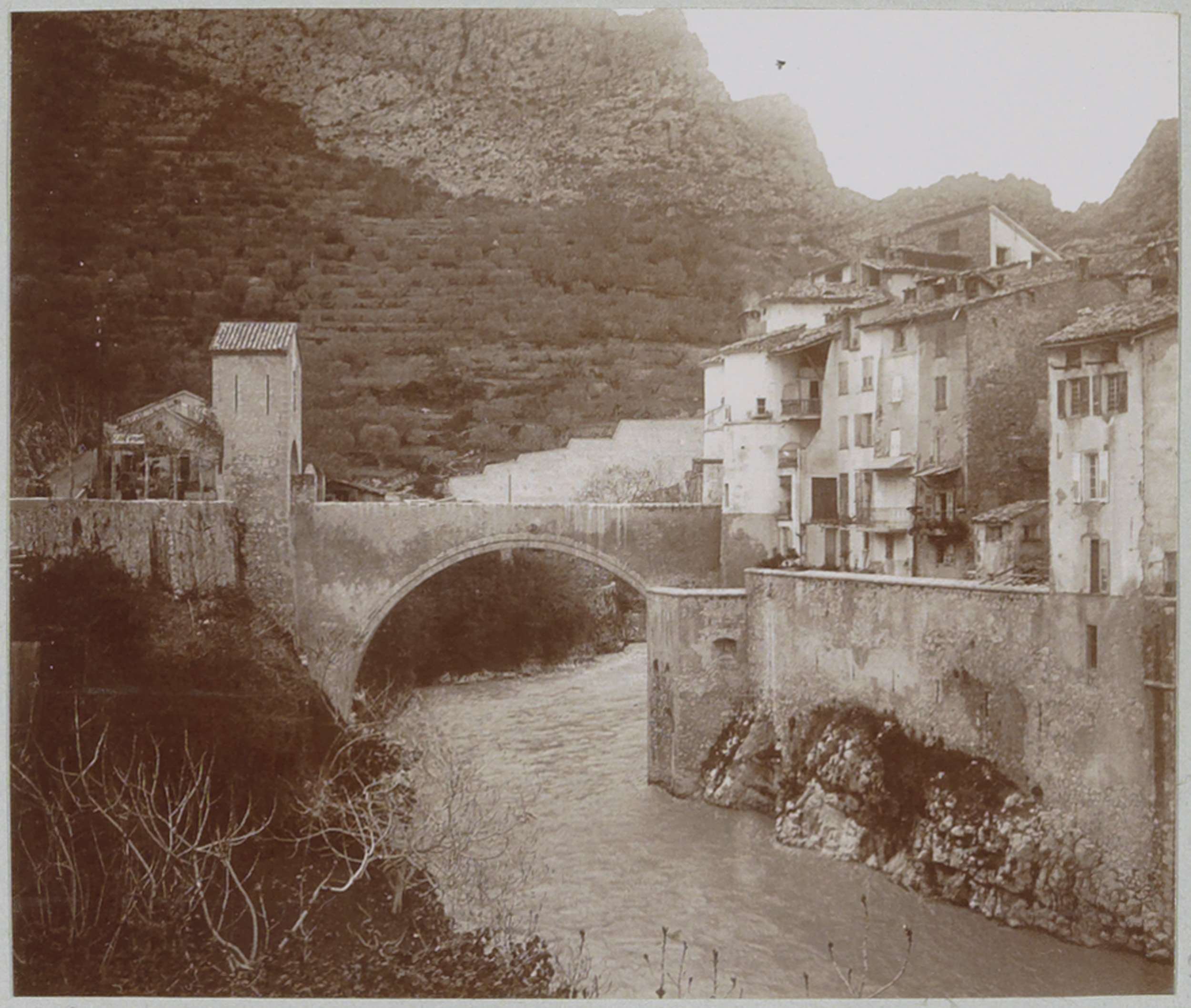 Gezicht op een brug in het bergdorp Touët-de-Beuil