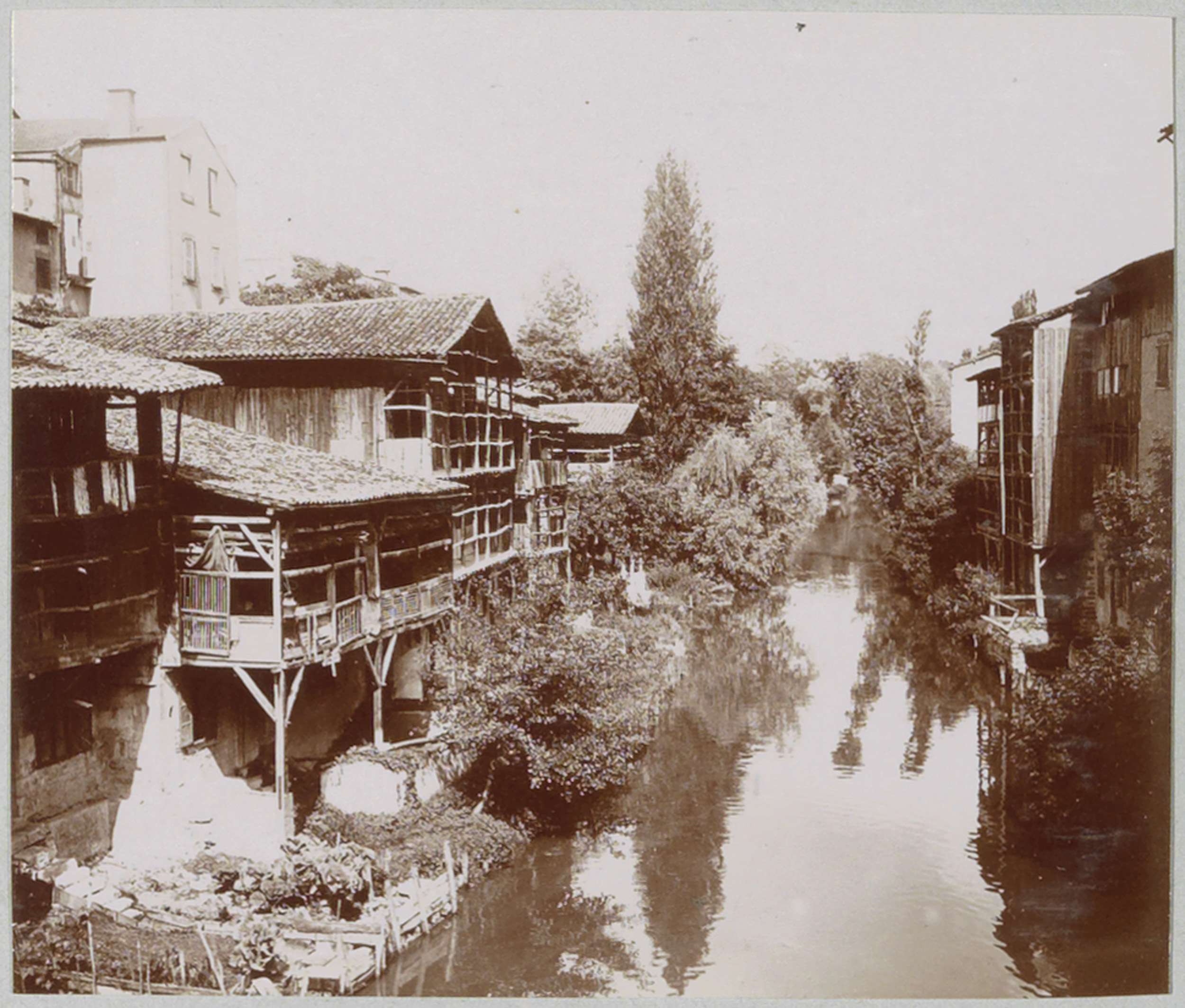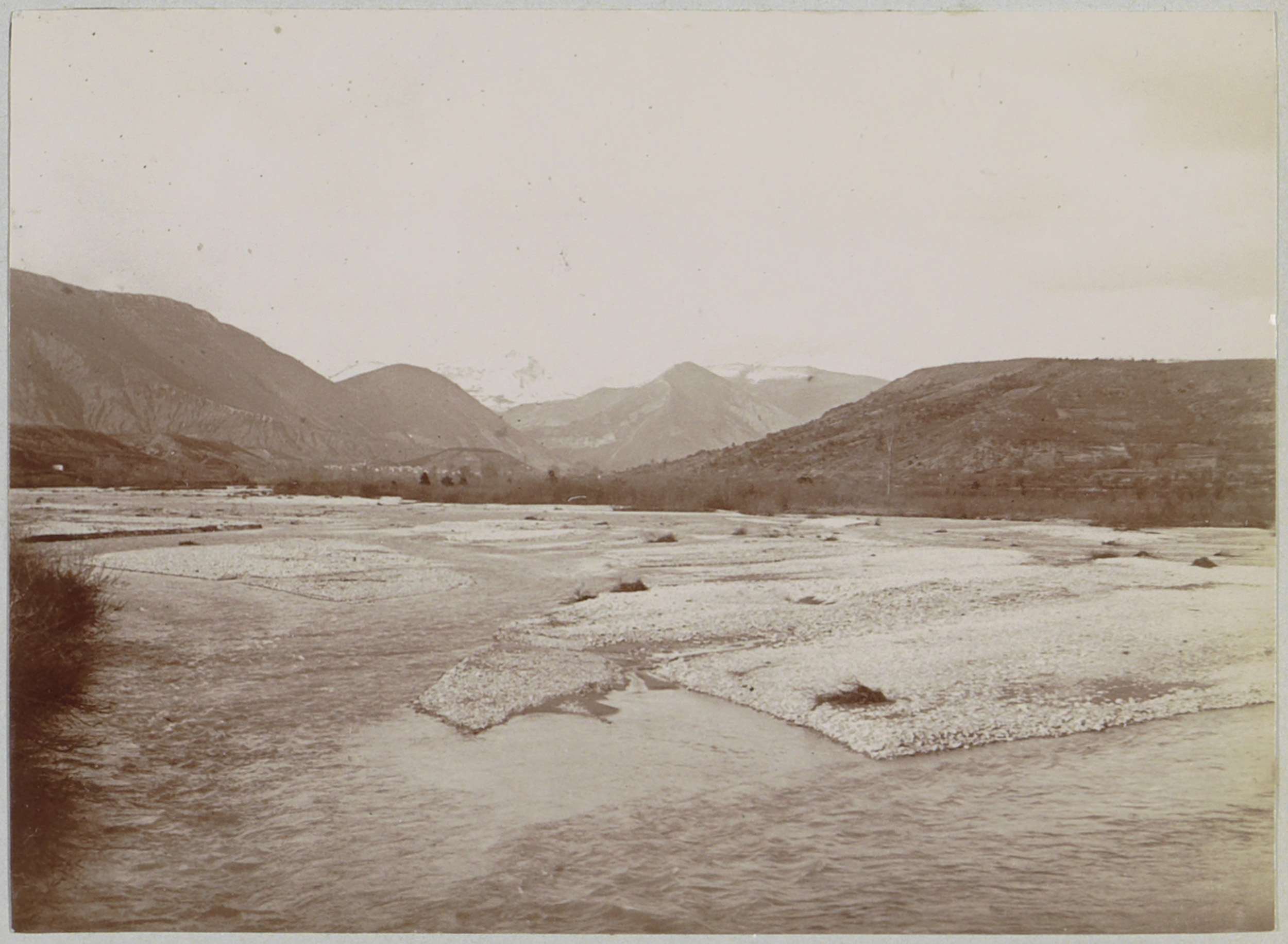 Gezicht op een rivierbedding, vermoedelijk in de Hau...