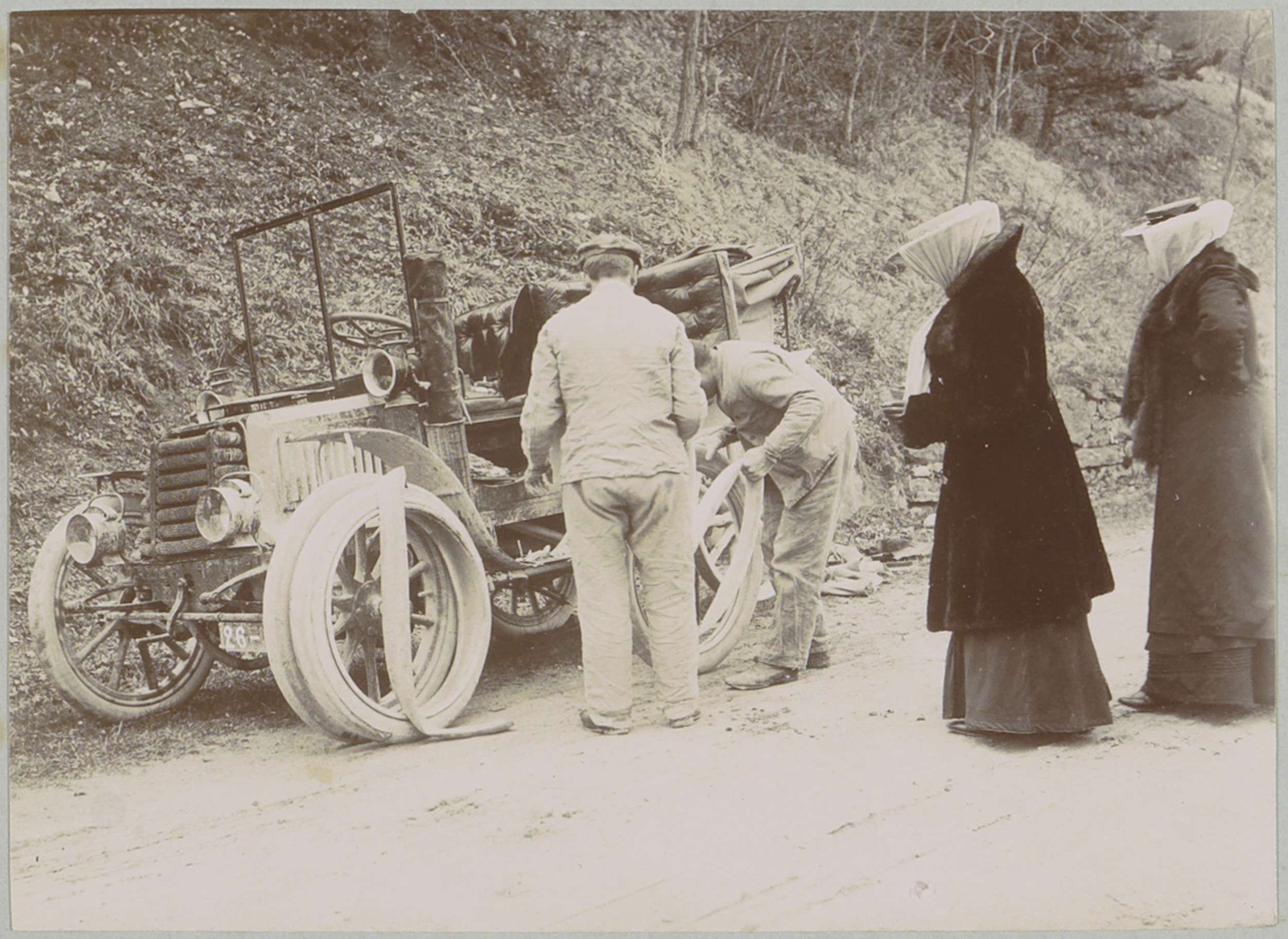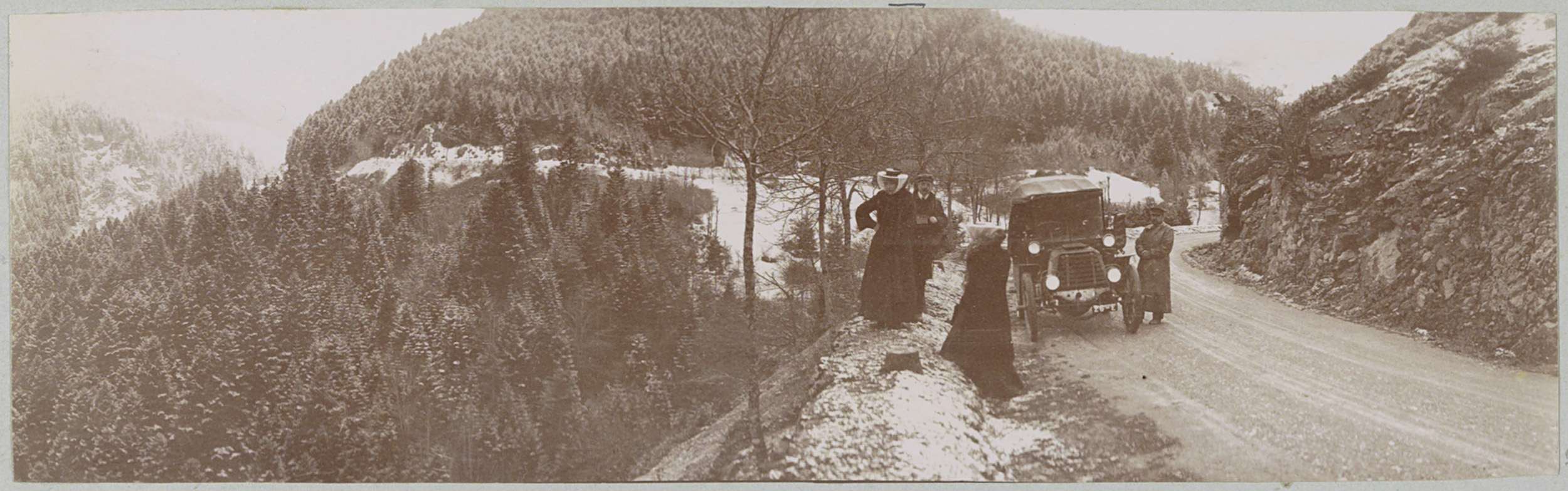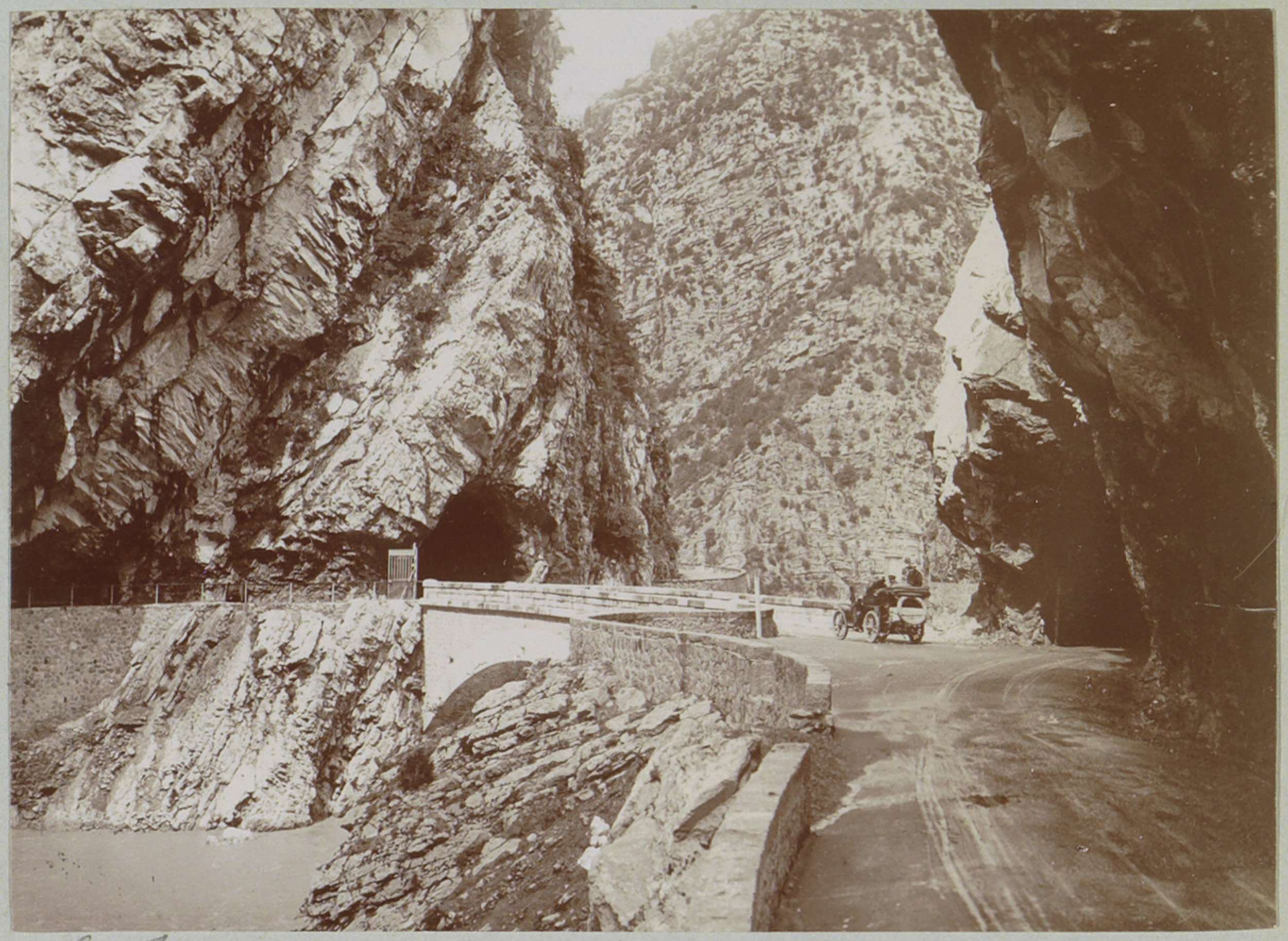 Automobiel op een bergweg, vermoedelijk op de Route ...