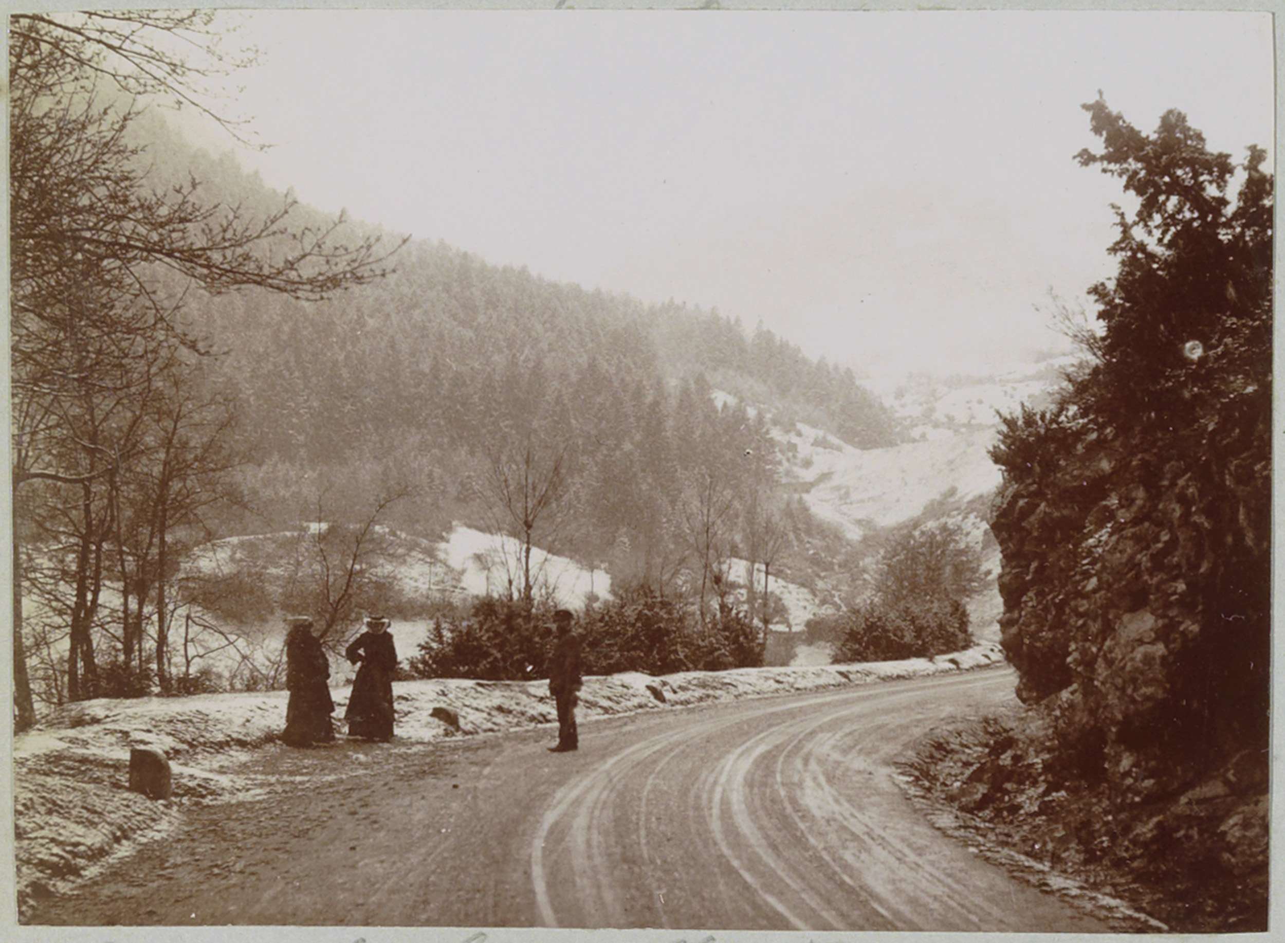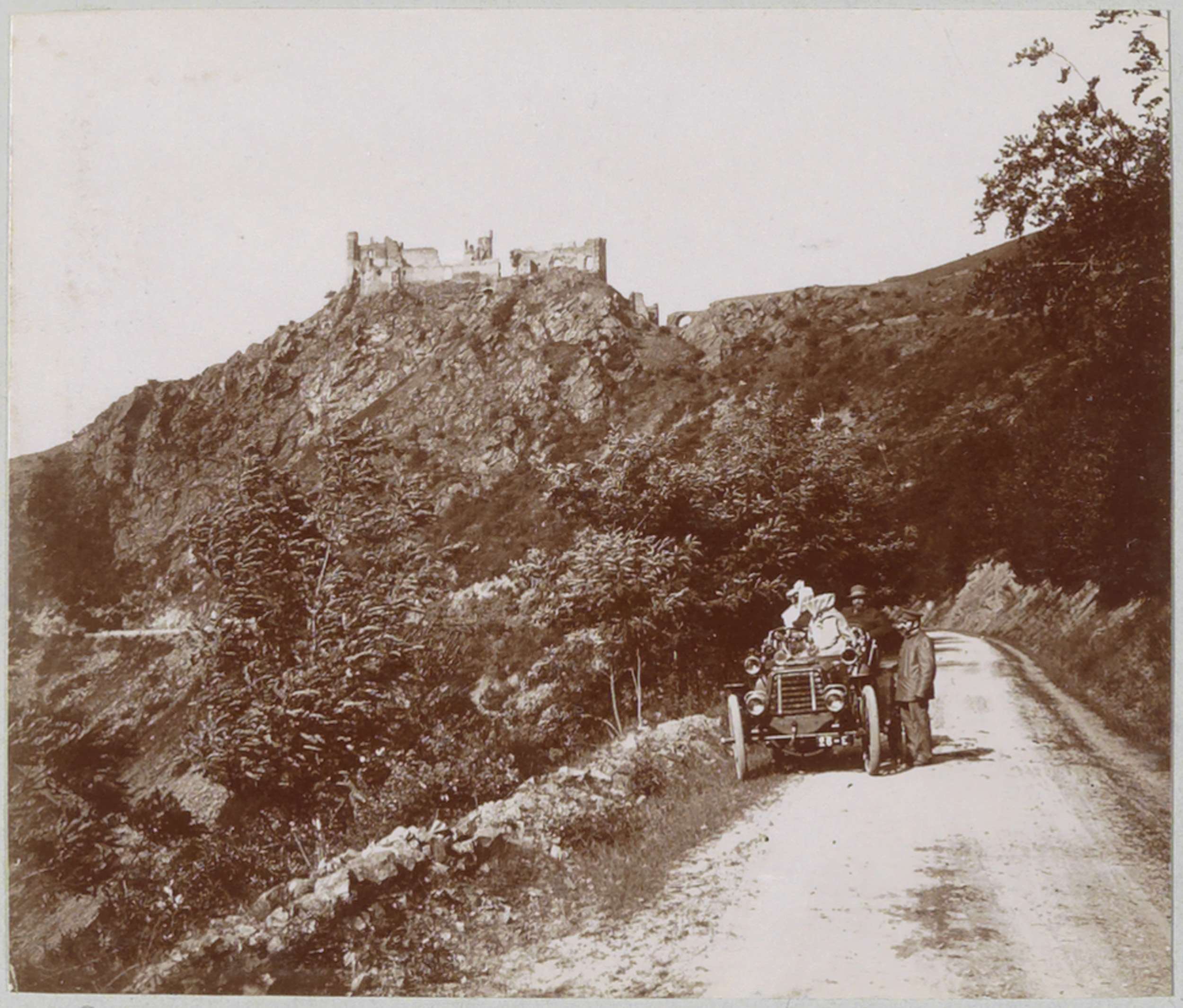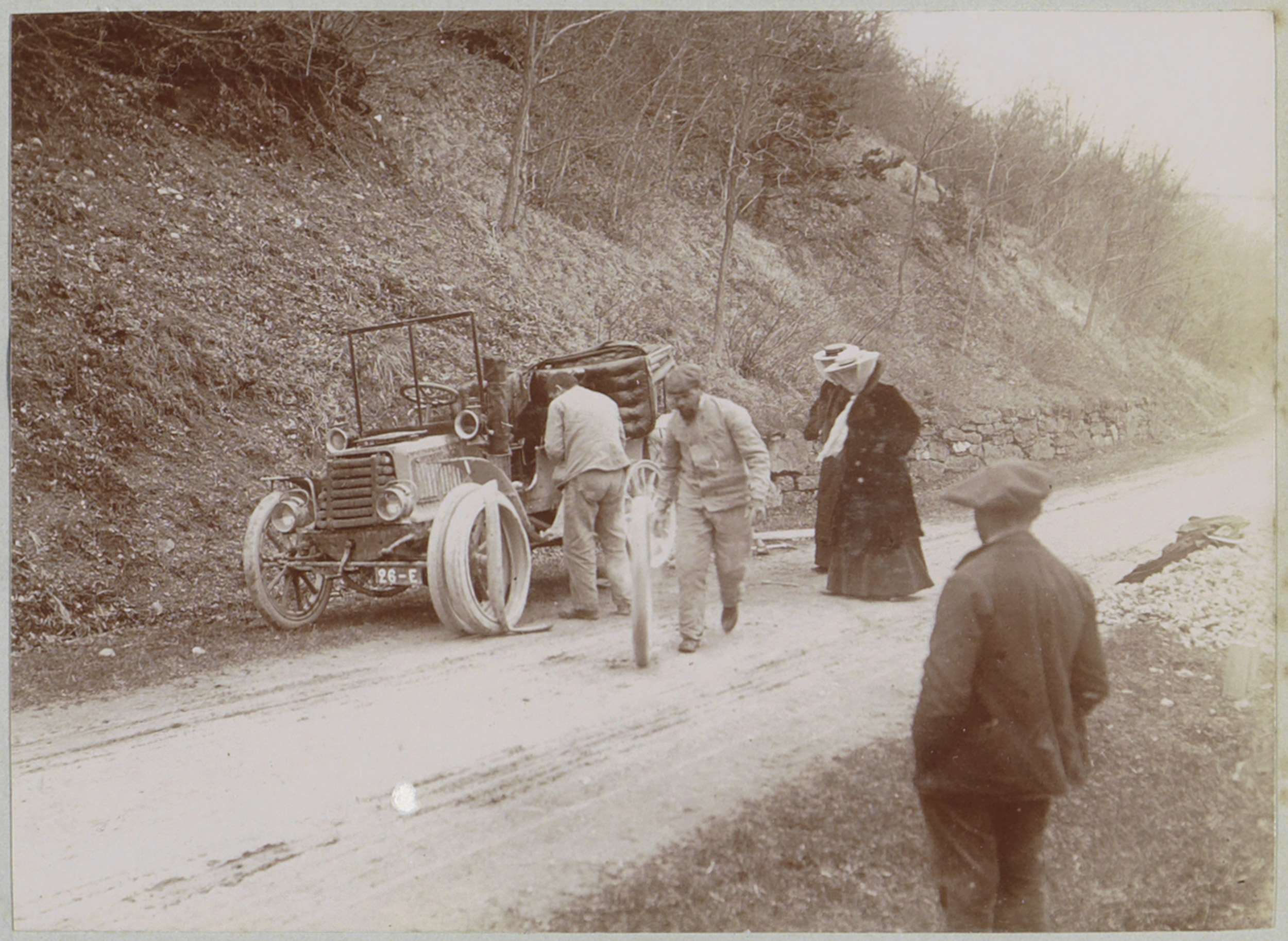 Automobiel op een bergweg, vermoedelijk op de Route ...