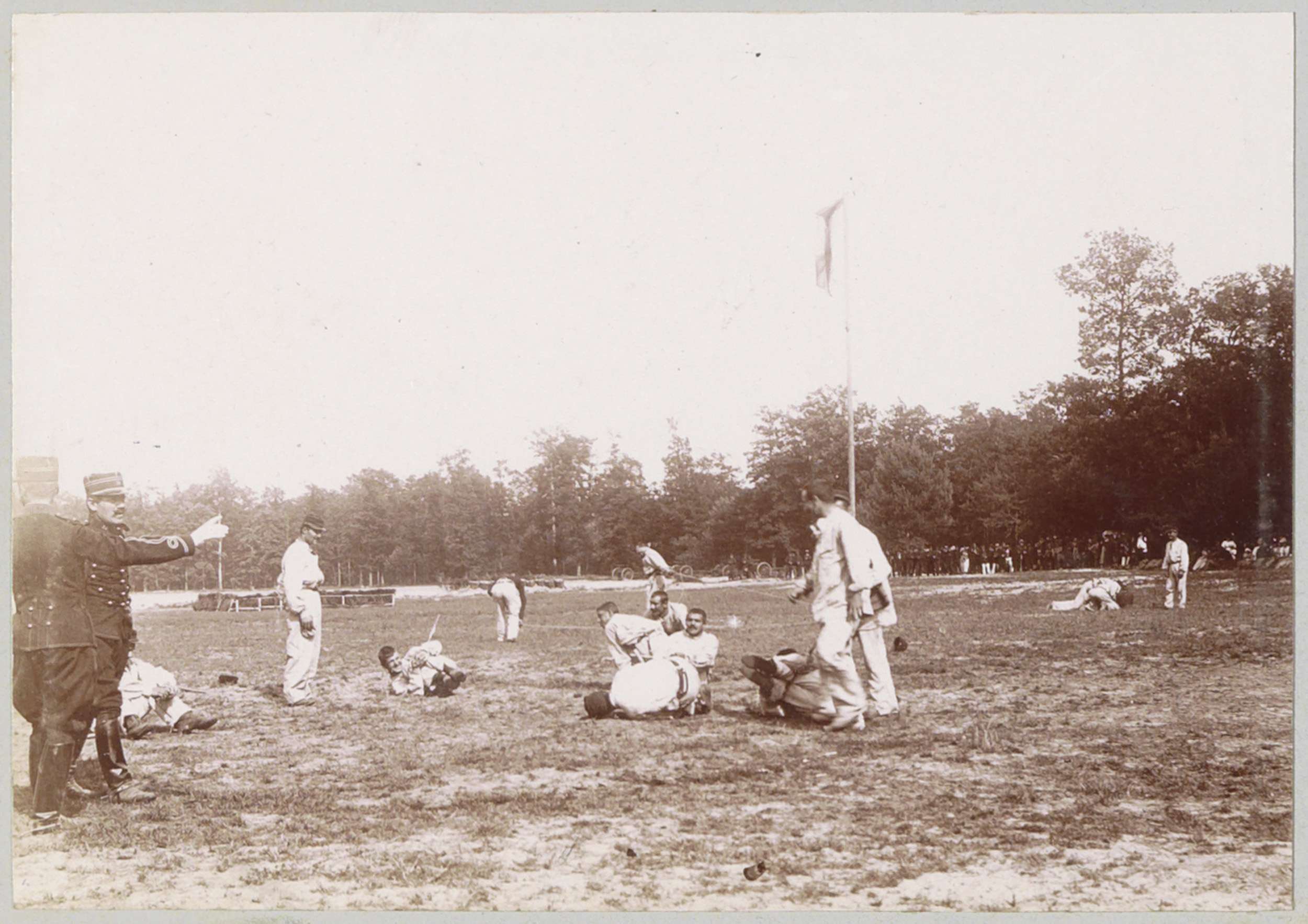 Zaklopende militairen tijdens oefening te Fontainebleau