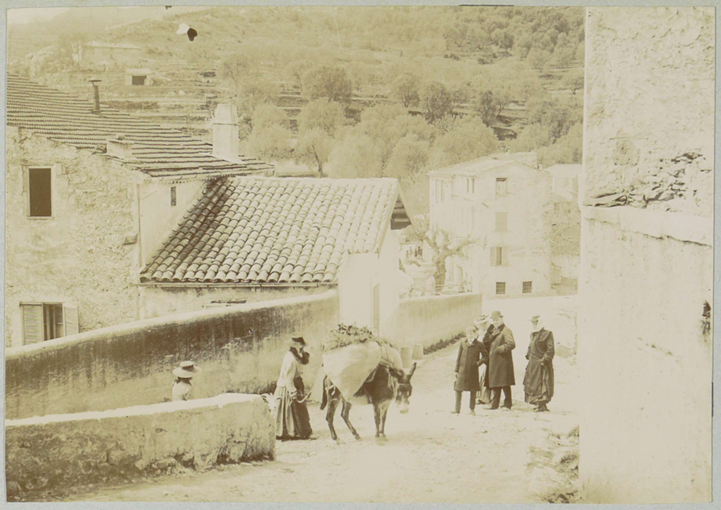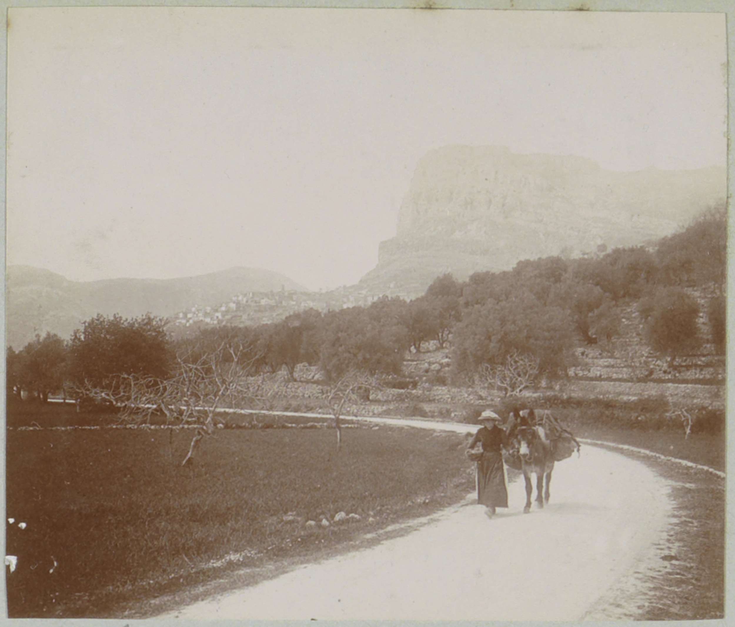 Vrouw met een beladen ezel op een landweg bij Saint-...