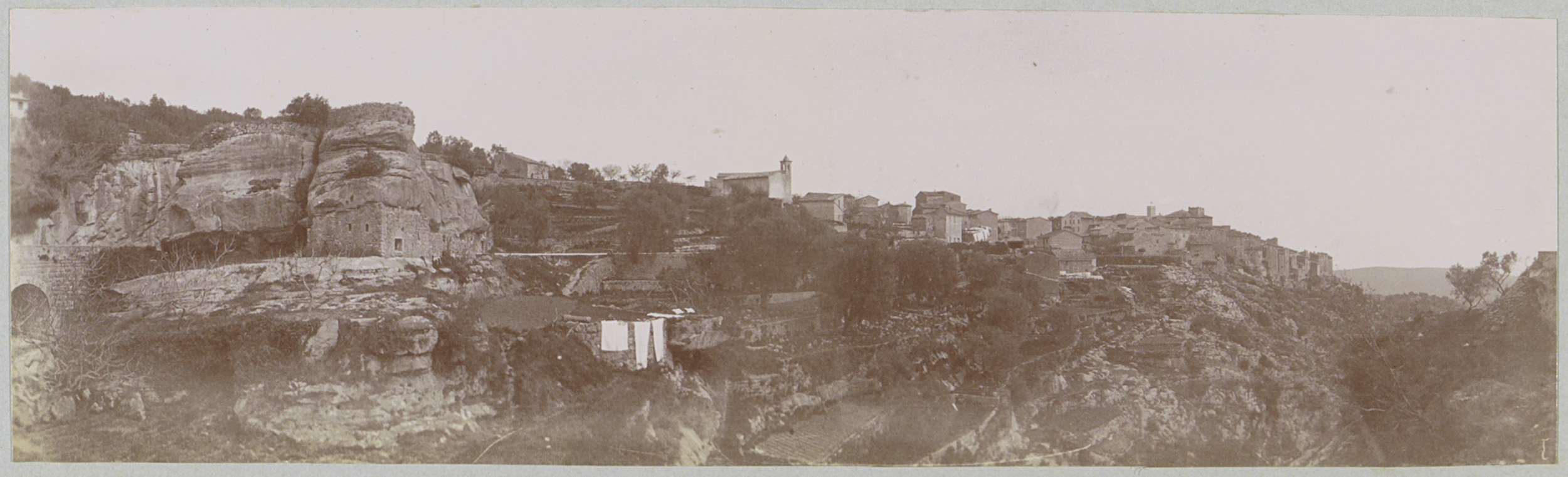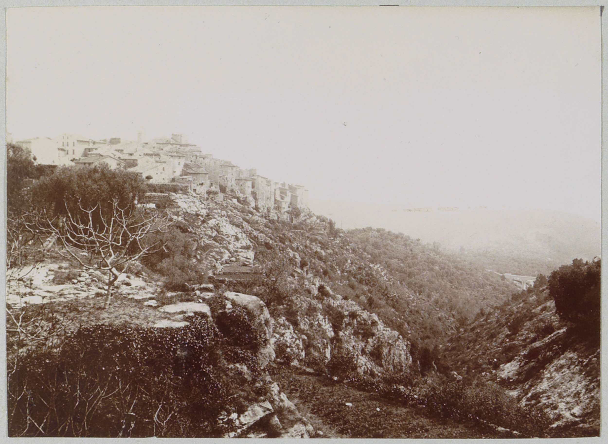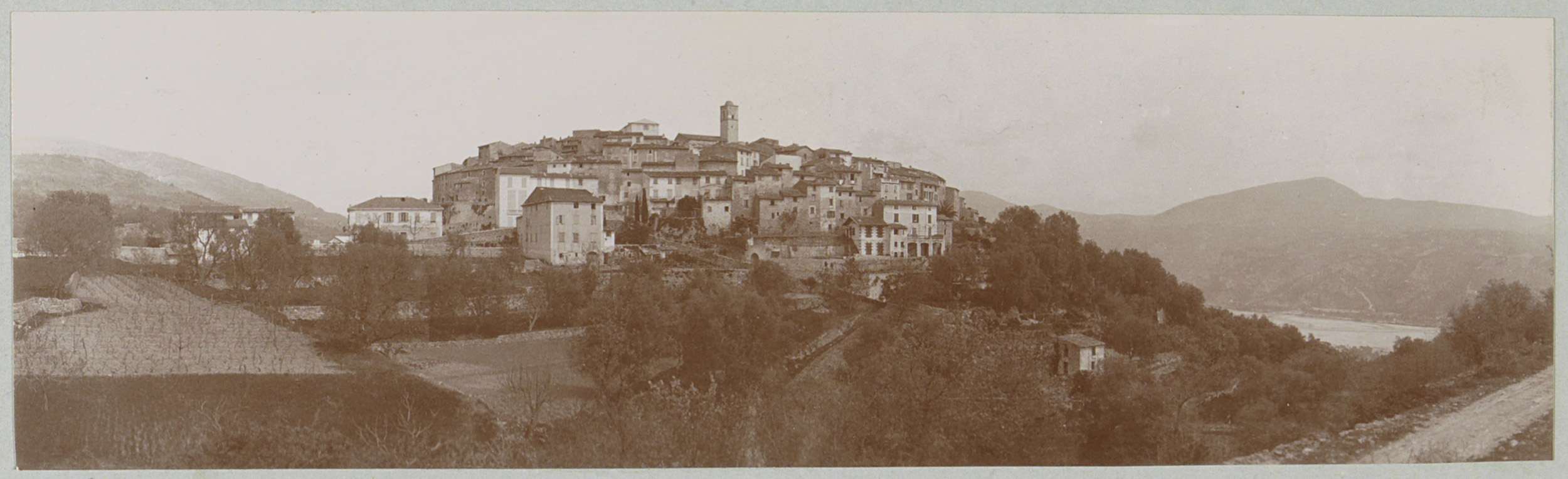 Gezicht op Tourrettes-lès-Vence met een automobiel i...