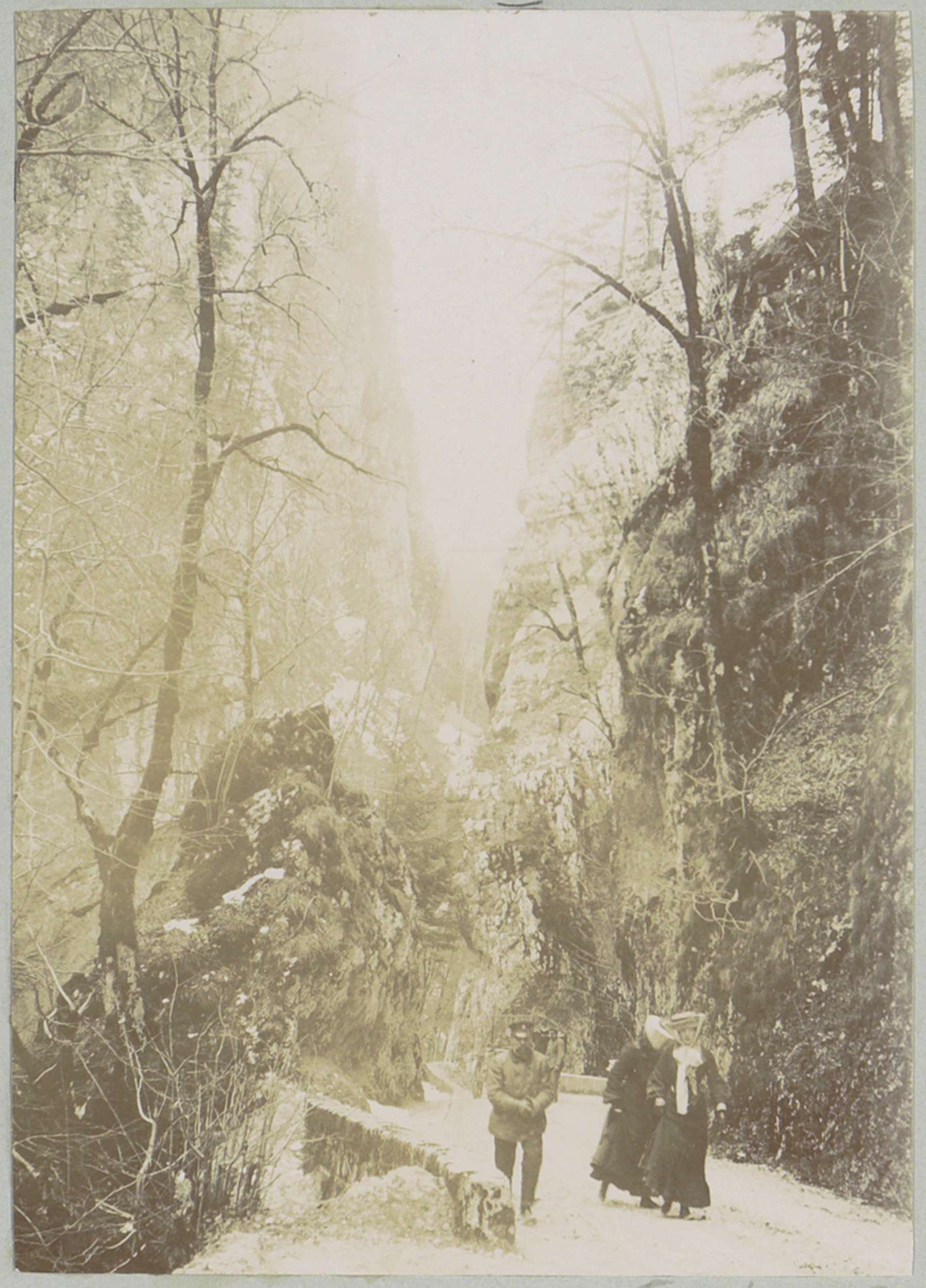 Twee vrouwen bij een tunnel op de Route de la Grande...