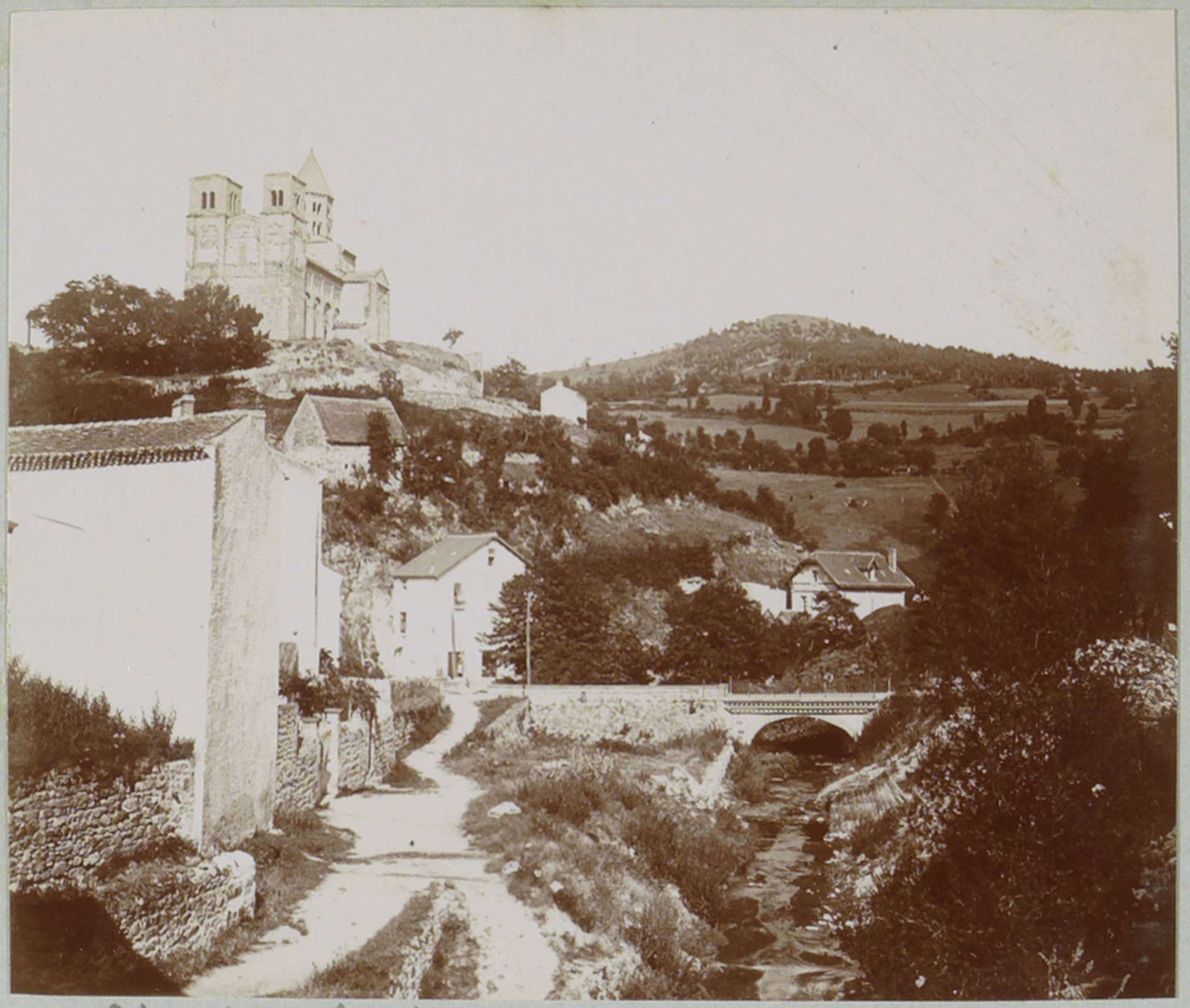 Gezicht op Saint-Nectaire met linksboven de Notre-Da...