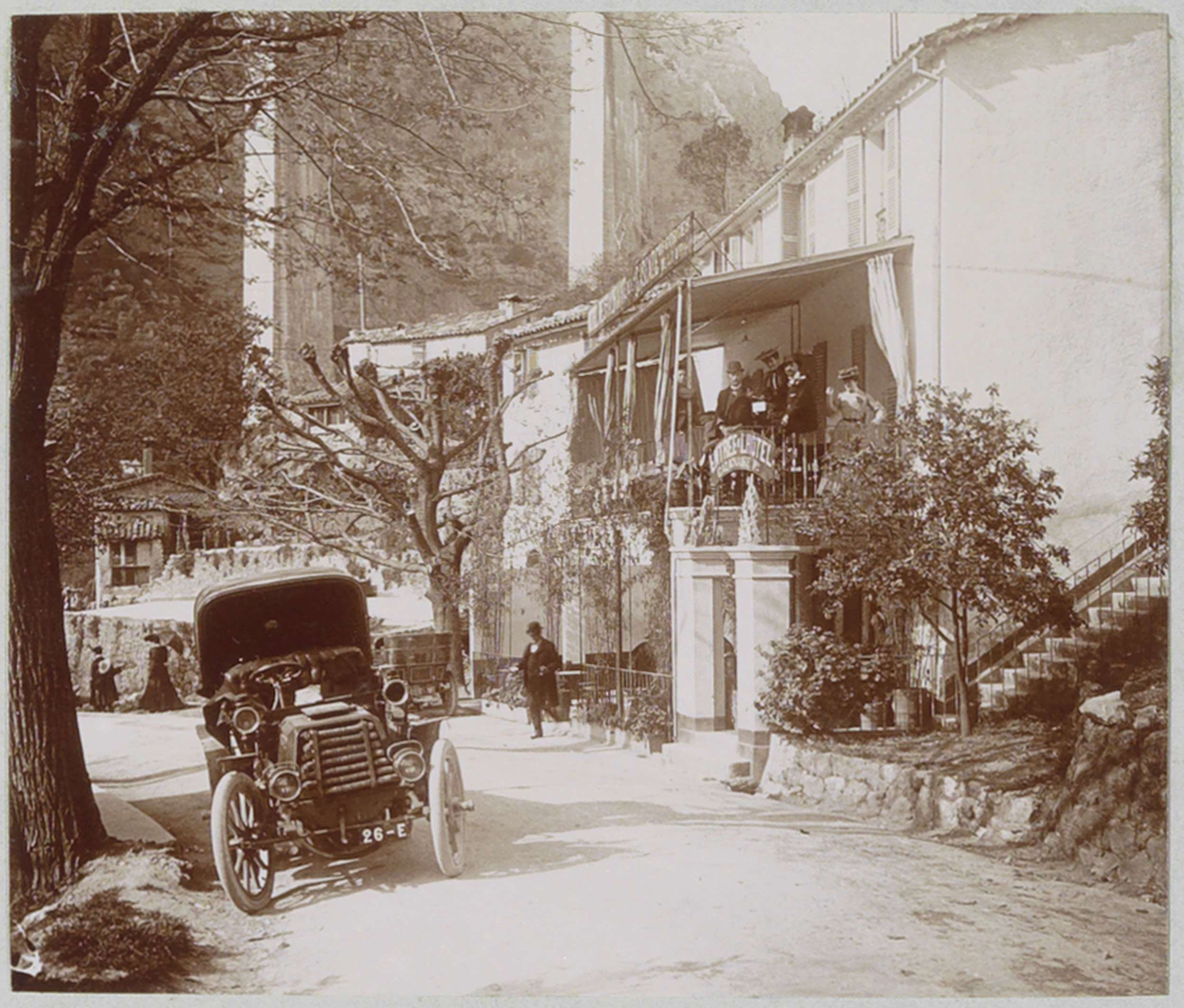 Straatgezicht met automobiel in Pont du Loup, rechts...