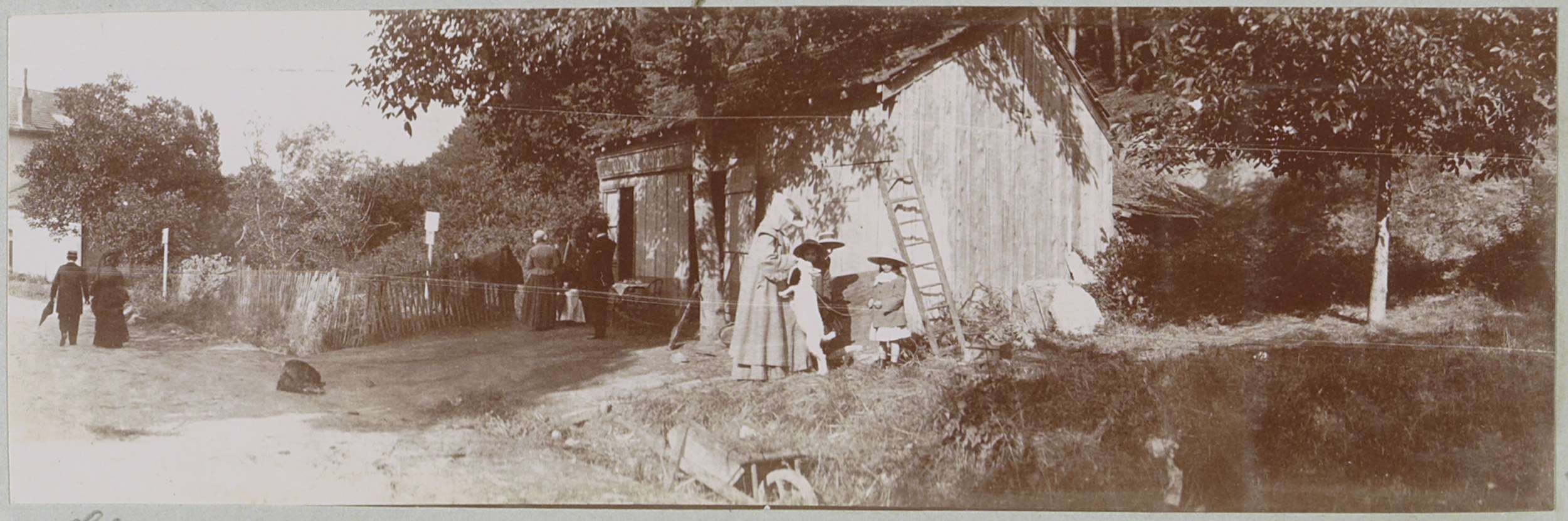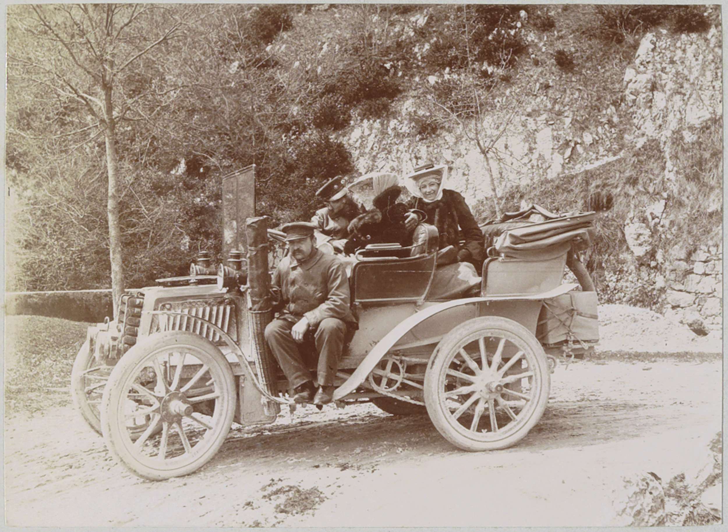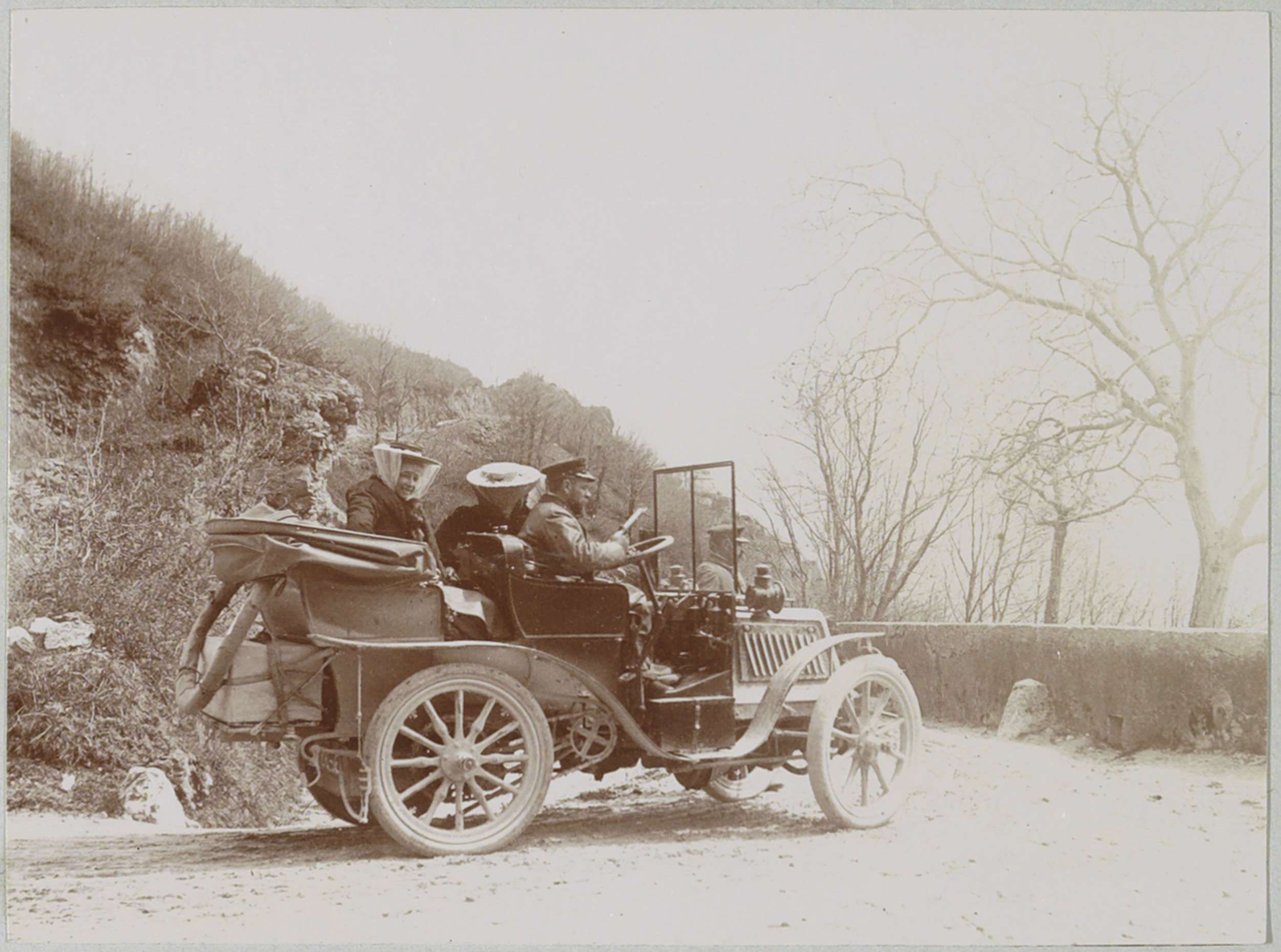 Gezelschap in een automobiel, vermoedelijk in buurt ...