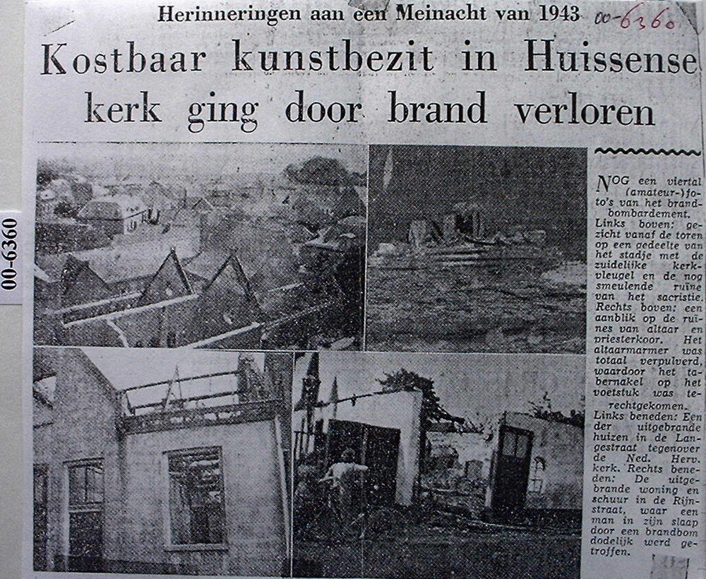 Vijf foto,s van huizen en school in Huissen, die tij...
