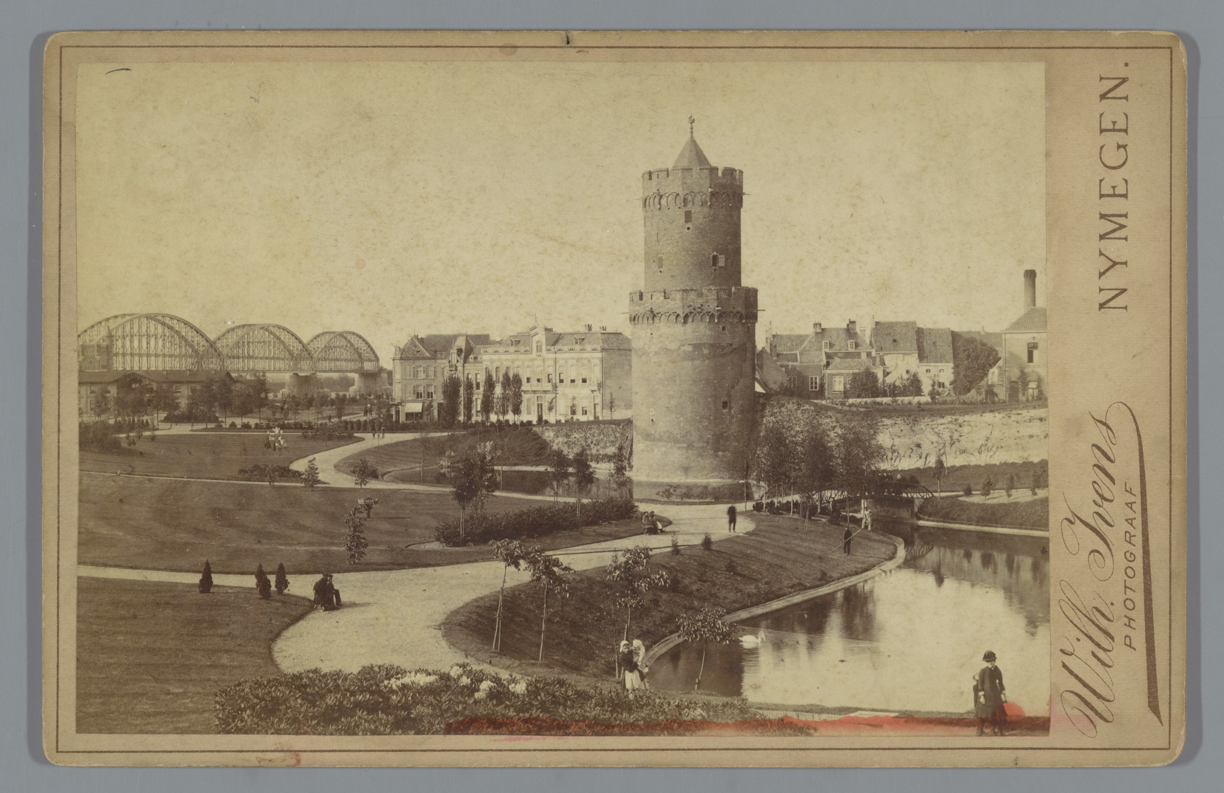 Gezicht op Kronenburgerpark, de kruittoren en de spo...