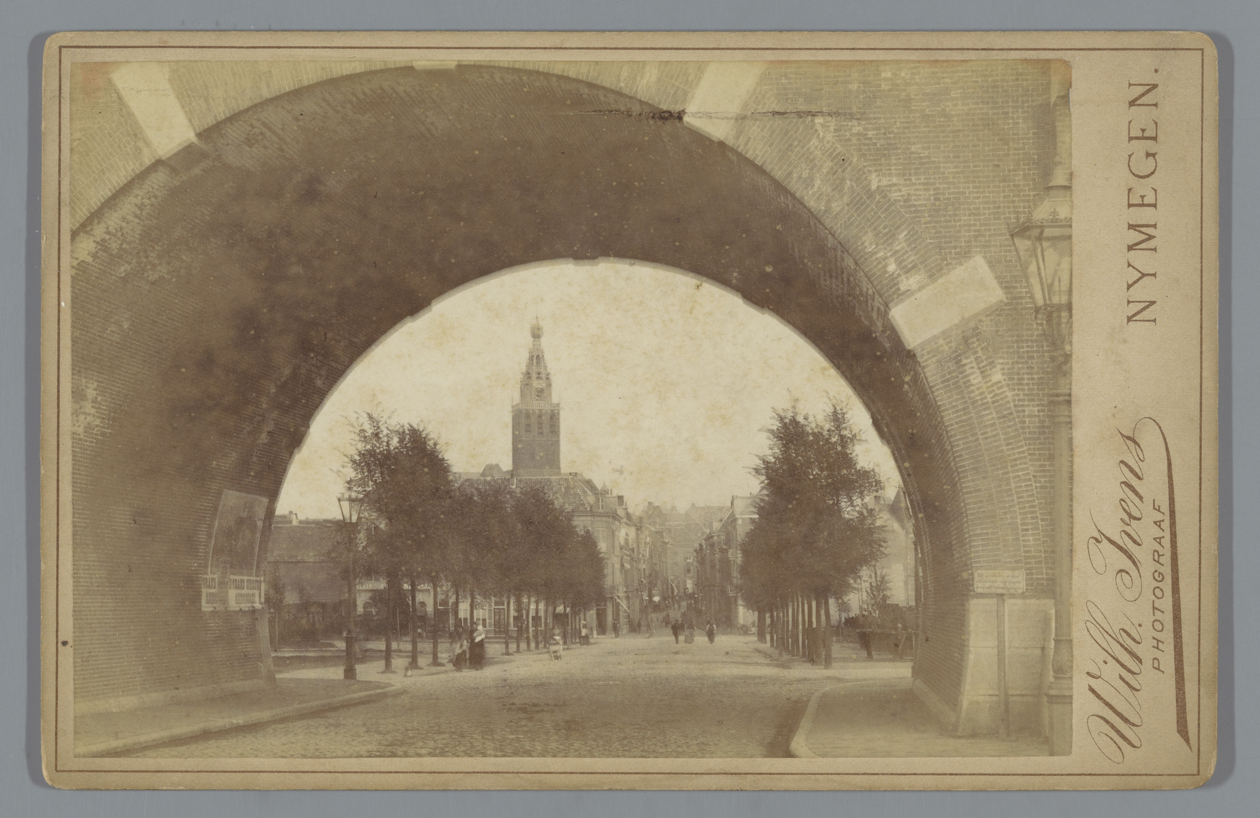 Gezicht op Nijmegen door de Hezelpoort