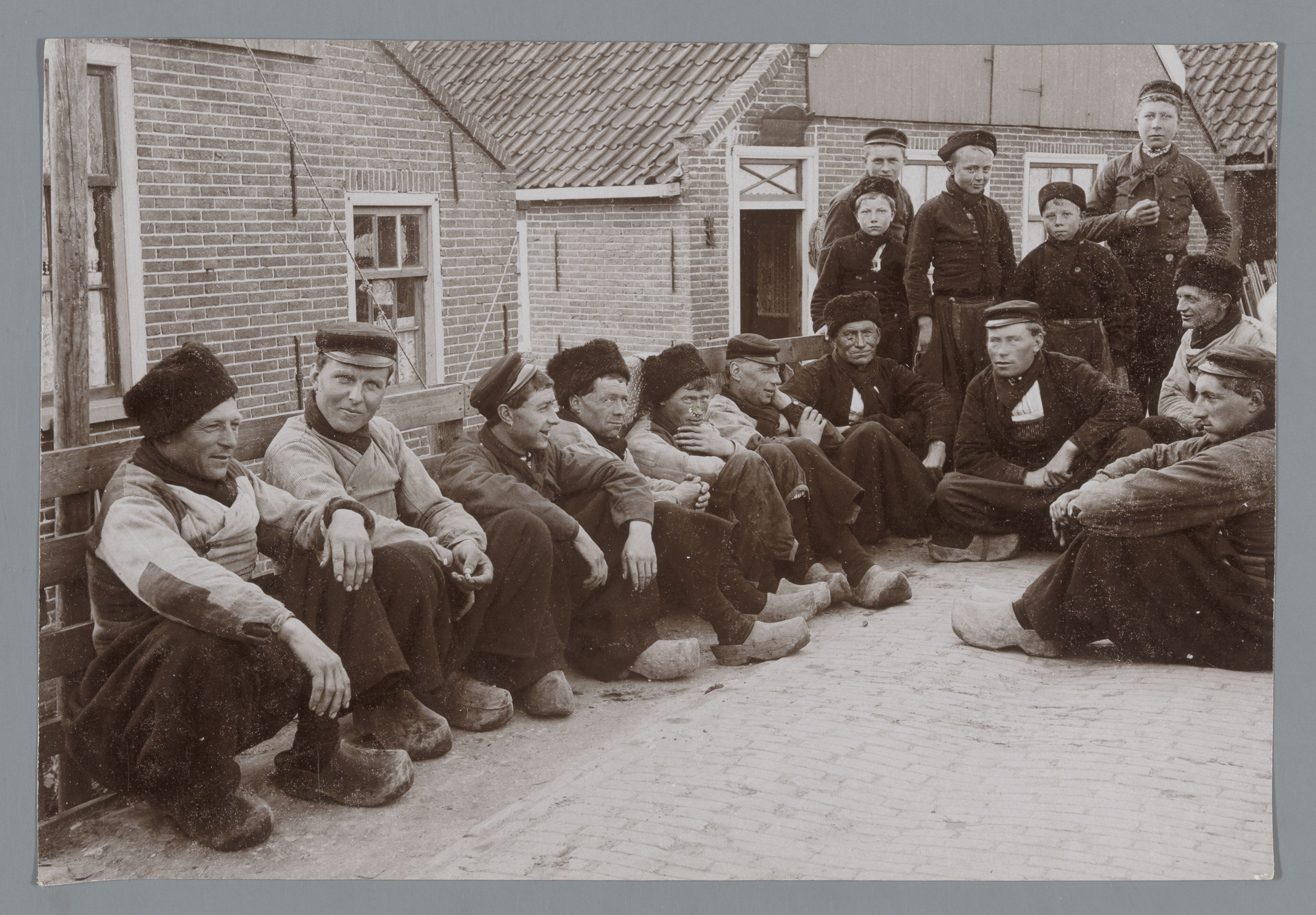 Groepsportret van mannen in klederdracht te Muiden