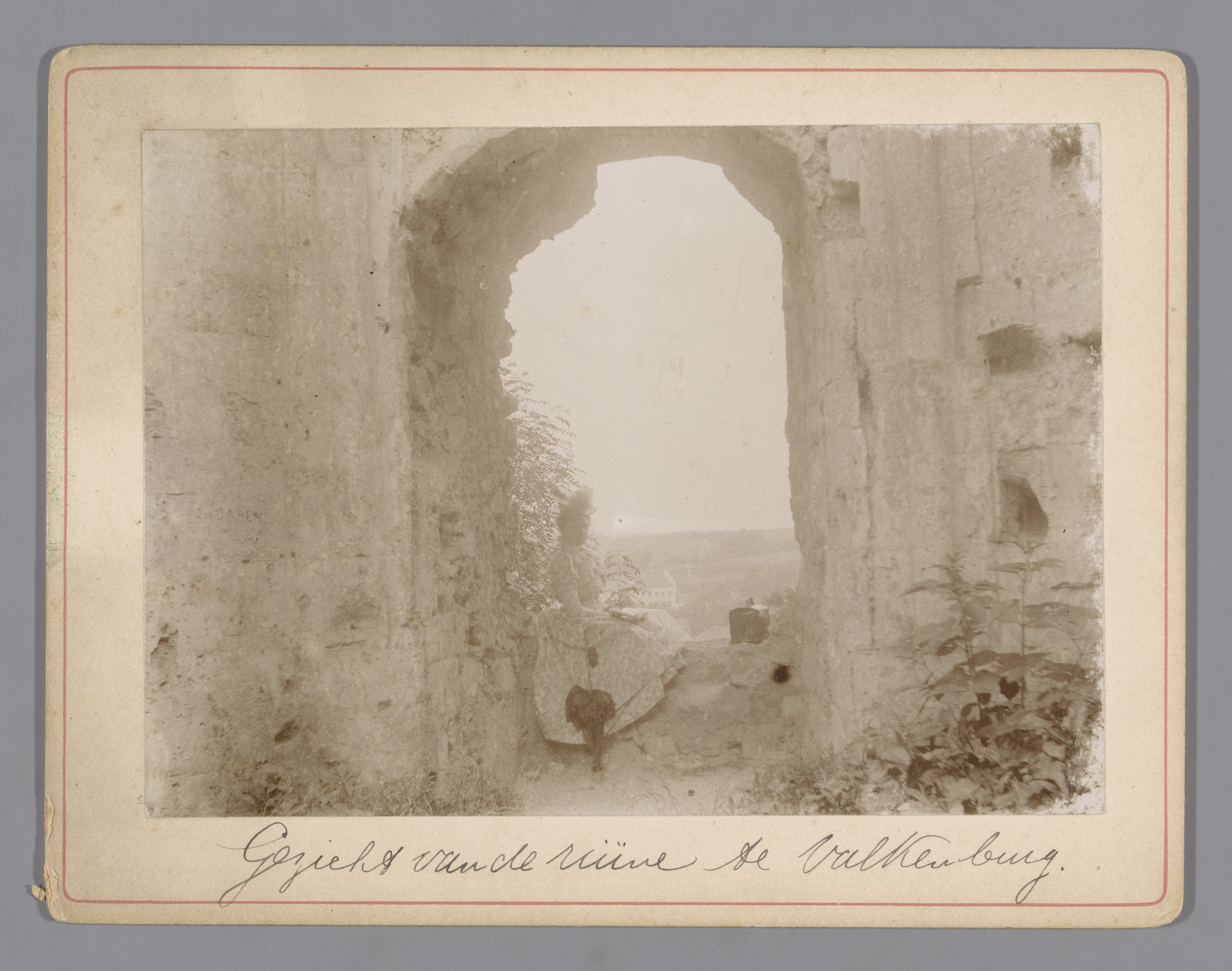Portret van een vrouw bij de ruïne te Valkenburg