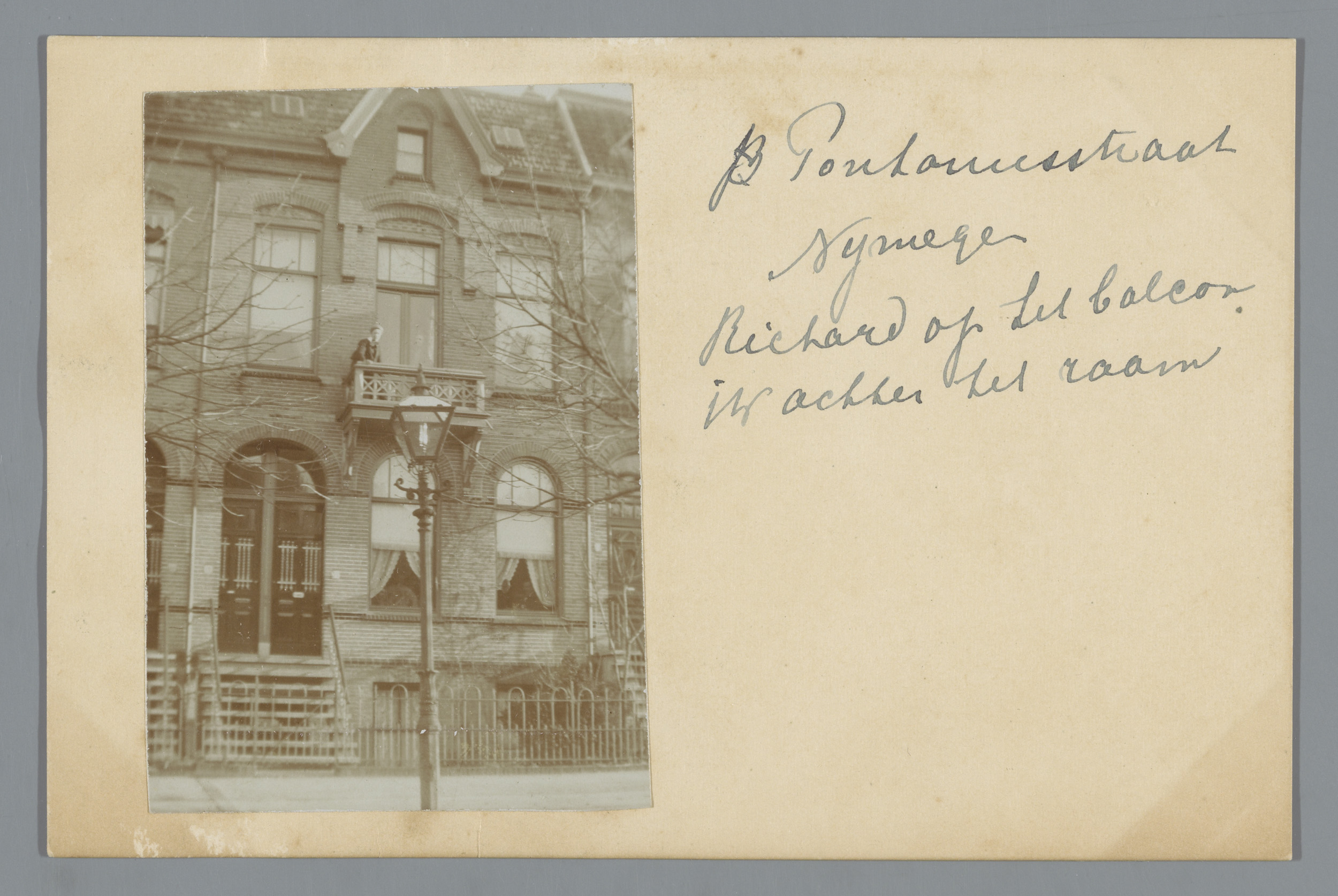 Pontanusstraat Nijmegen, Richard op het balcon, ik a...