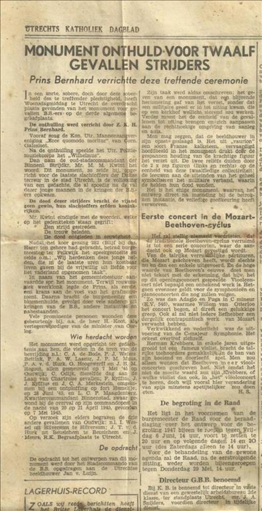 Utrechts Katholiek Dagblad, Monument onthuld voor tw...