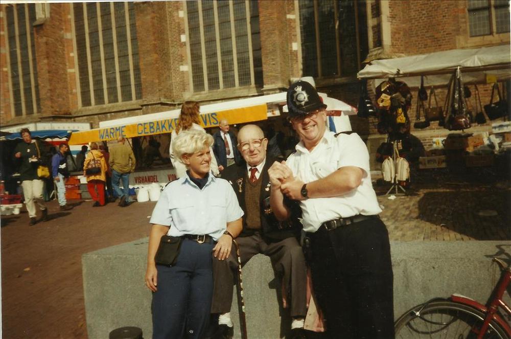 Foto van Duitse officier, Britse militair en Nederla...
