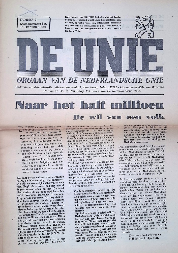 De Unie 19 oktober 1940 nummer 9