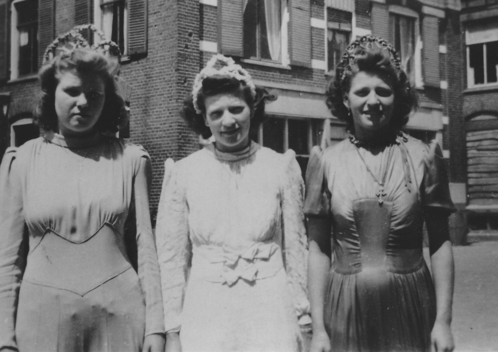 Drie dames in de Helmichstraat voor de Volksbond.vln...