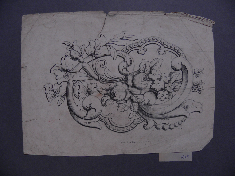 Litho, voorstellende ranken met bloemmotief, circa 1870