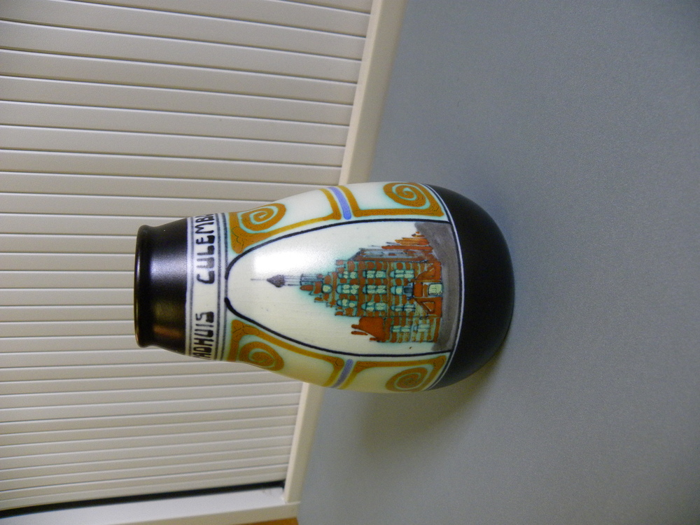 vaas van steengoed met afbeelding stadhuis te Culemb...
