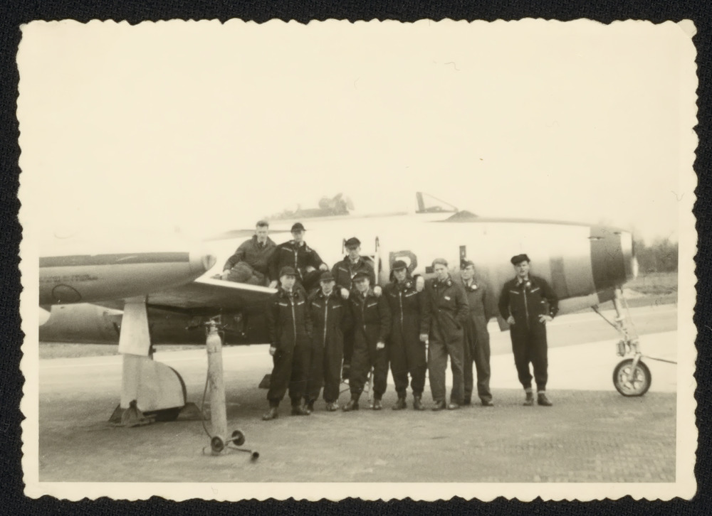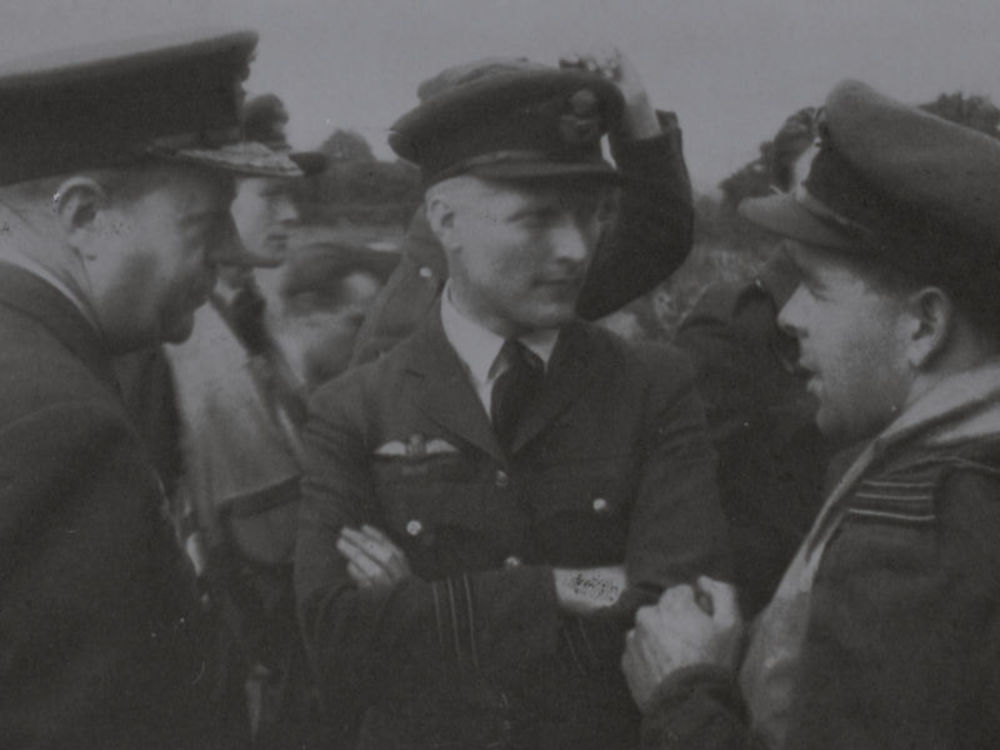 Foto van drie Engelse piloten in gesprek