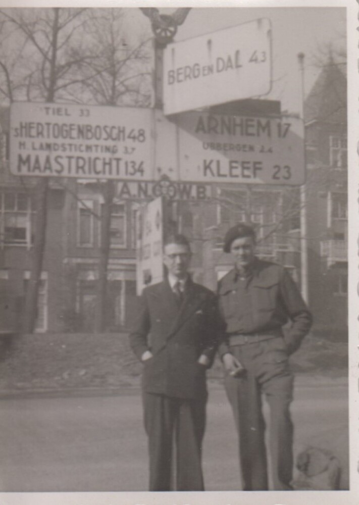 Foto van twee mannen waarvan een in Engels uniform b...