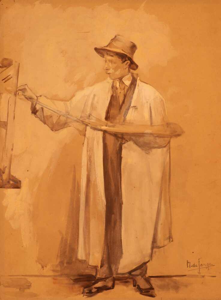 Schilder in atelier
