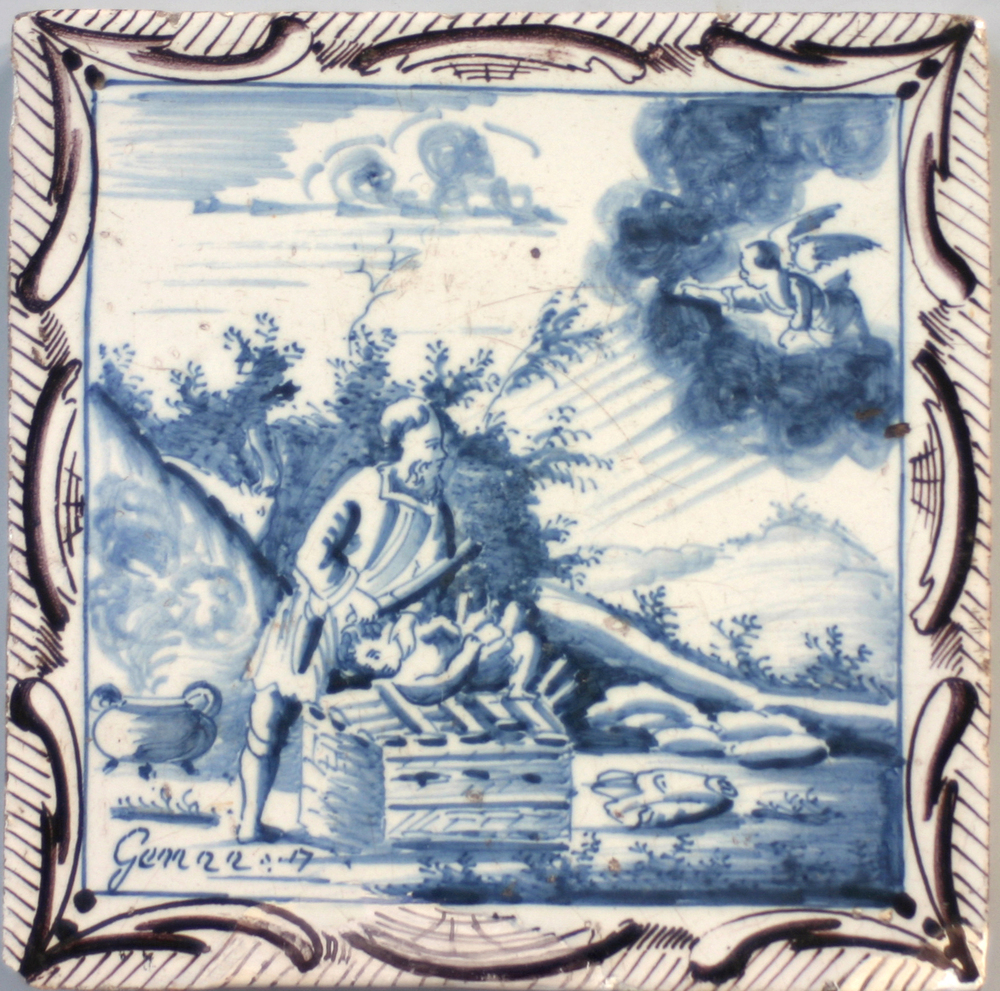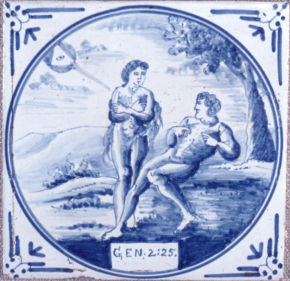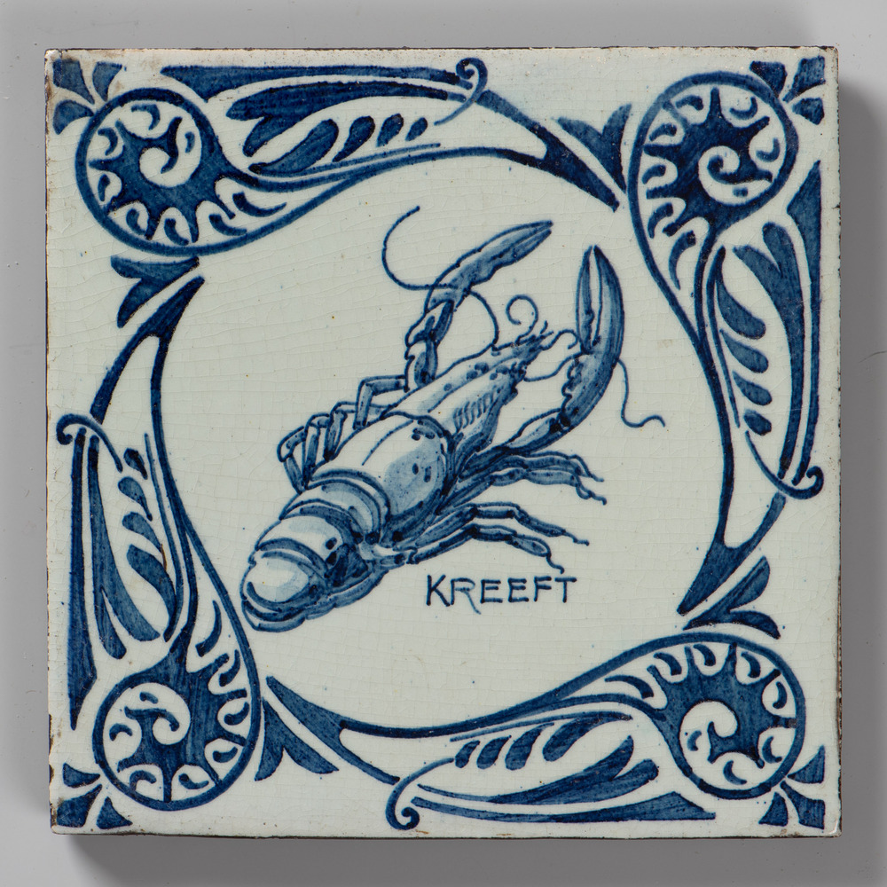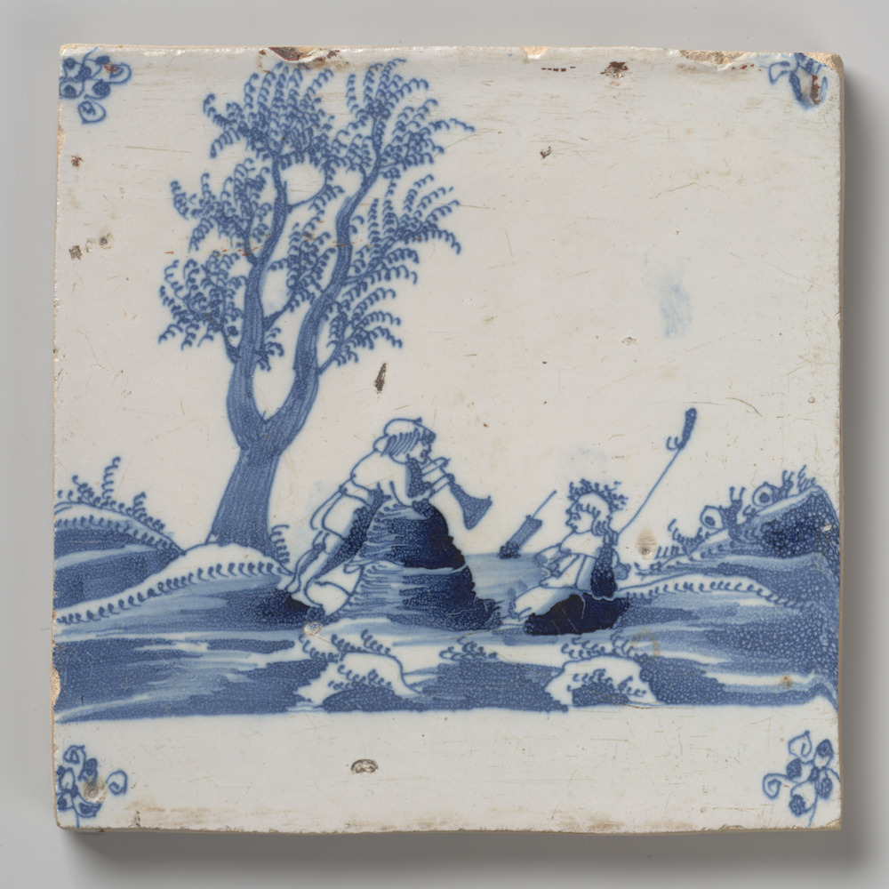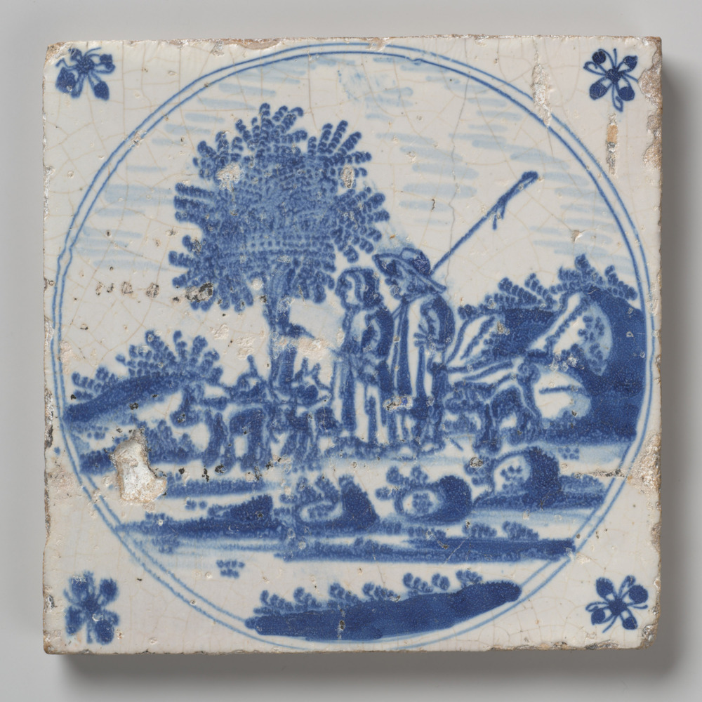 tegel van keramiek, in onderglazuur, voorstellende: ...
