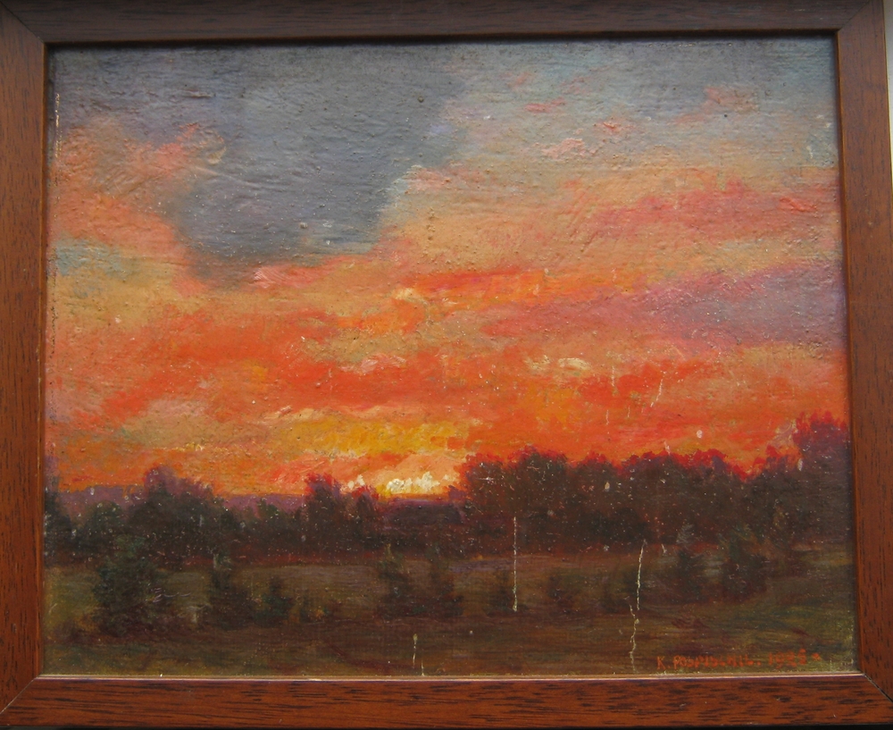 Schilderijtje met de titel Sonnenaufgang over Huize ...