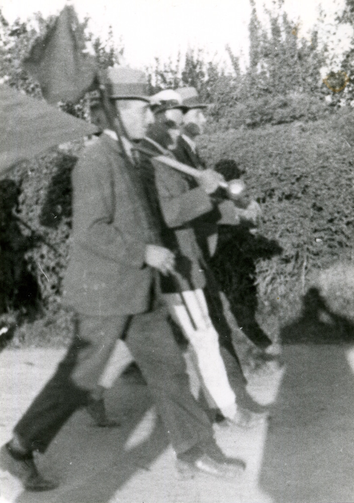 Zwart-wit foto van de Schutterij Eensgezindheid in A...