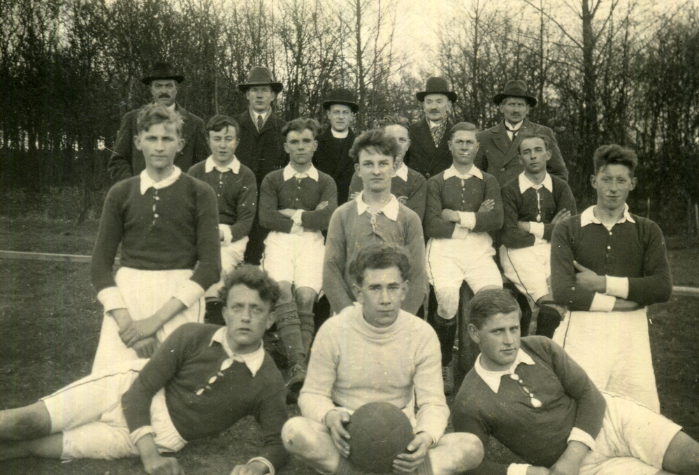 Zwart-wit foto van een voetbalteam z.j.