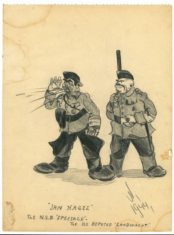 karikatuur van 2 landwachters van J.Nieuwenhuys