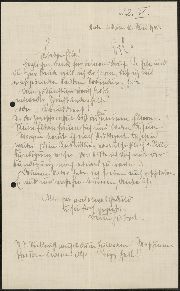 Brief van Hubert aan Ella 1934-05-22