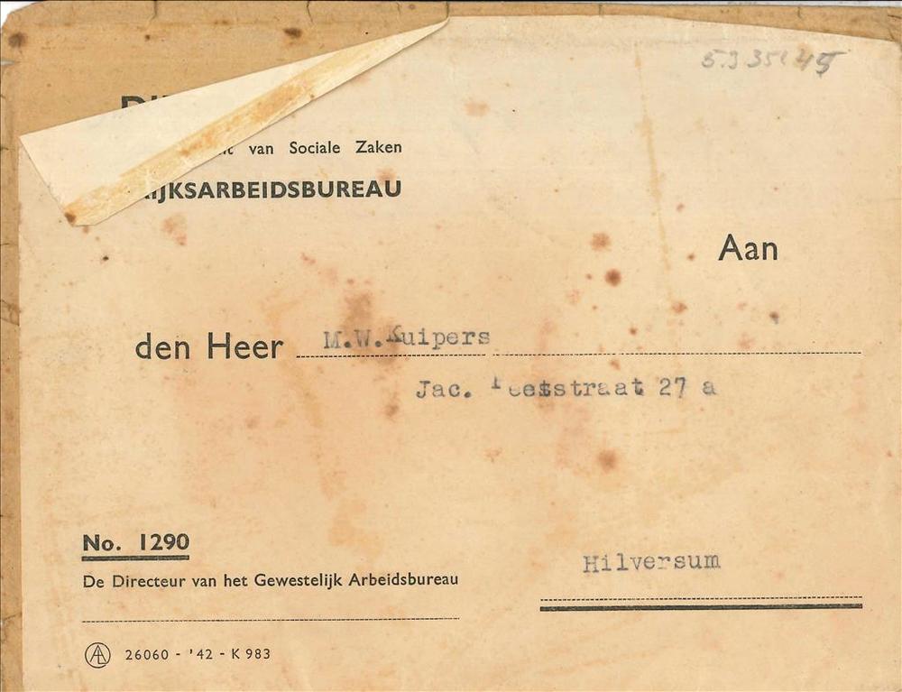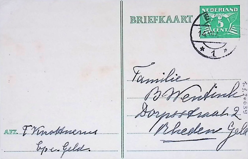 Distributiestamkaart op naam van ter Hofstede J.M.