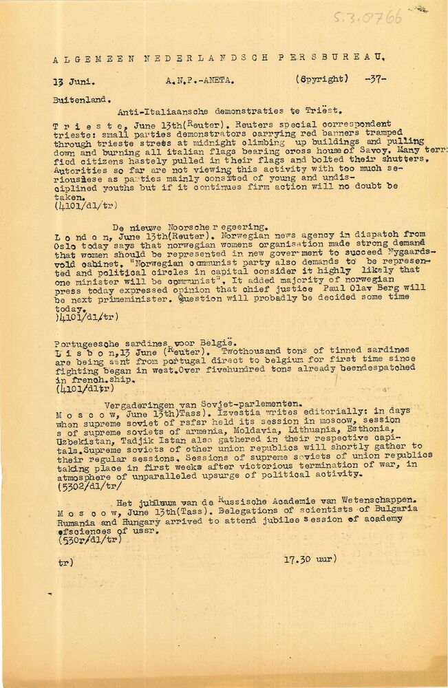 Vel: Algemeen Nederlandsch Persbureau, mededelingen,...