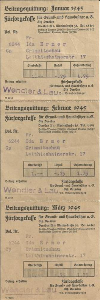 Beitragsquittung für Grund und Hausbesitzer Dresden,...
