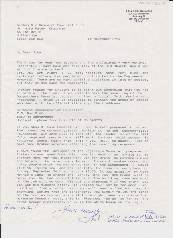 Brief aan Mike Patey voorzitter van het Arnhem Air D...