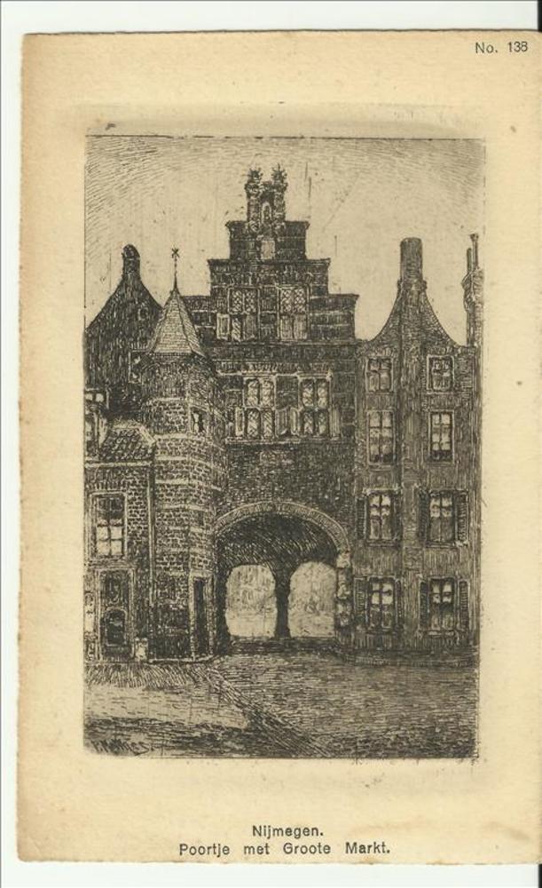 Ansichtkaart, een schets van het poortje van de Grot...