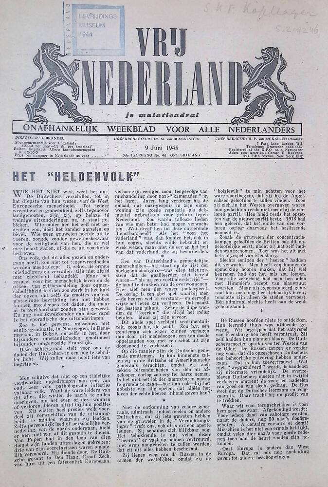 De Patriot, uitgave : Nederlandse Volksmilitie.