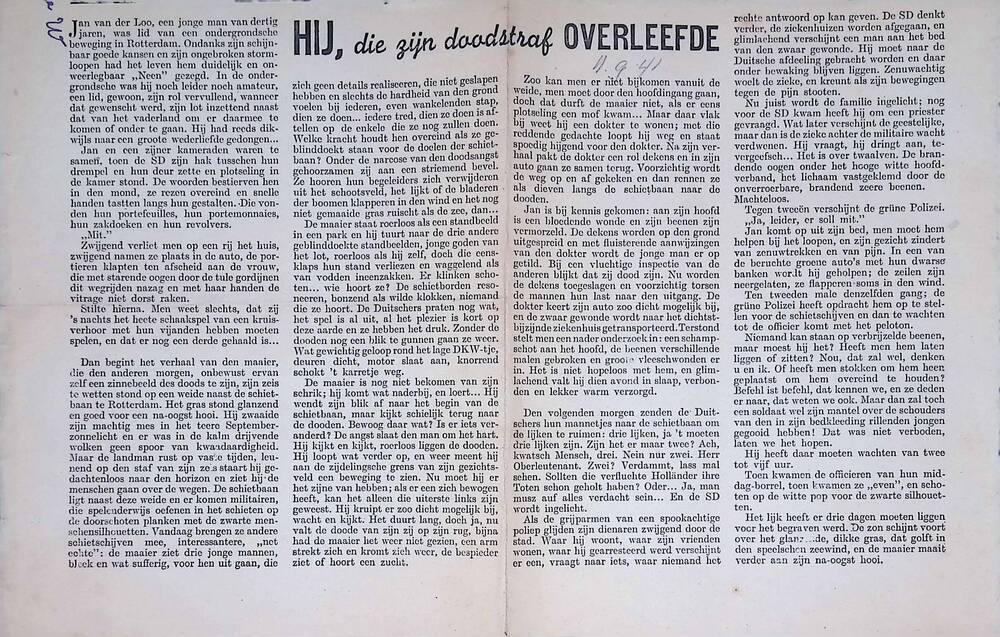 Een aantal krantenknipsels uit de oorlogsperiode 194...