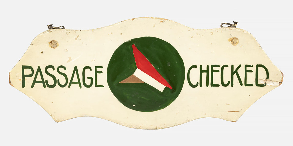 Bordje gemaakt van hout met daarop de tekst : Passag...