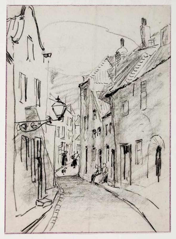 Foto, voorstellende de Kromme Elleboogsteeg te Culem...