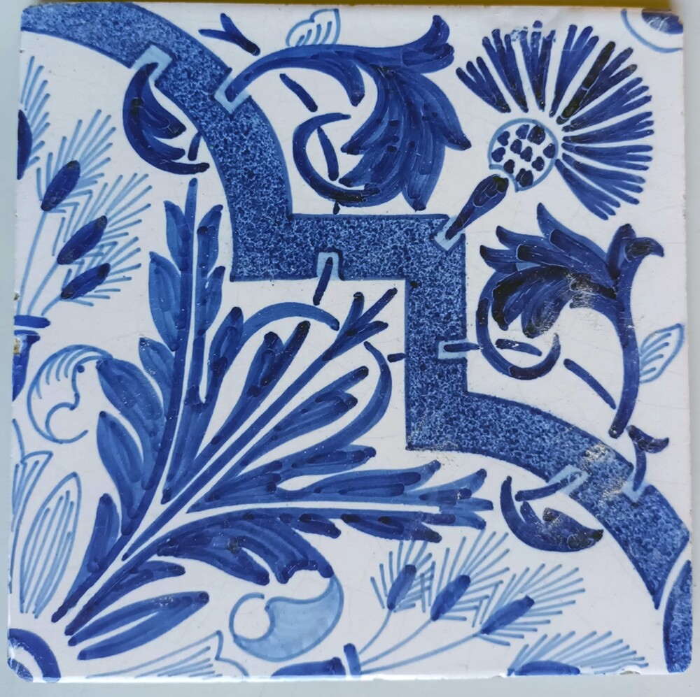 tegel van aardewerk met tinglazuur, voorstellende: h...