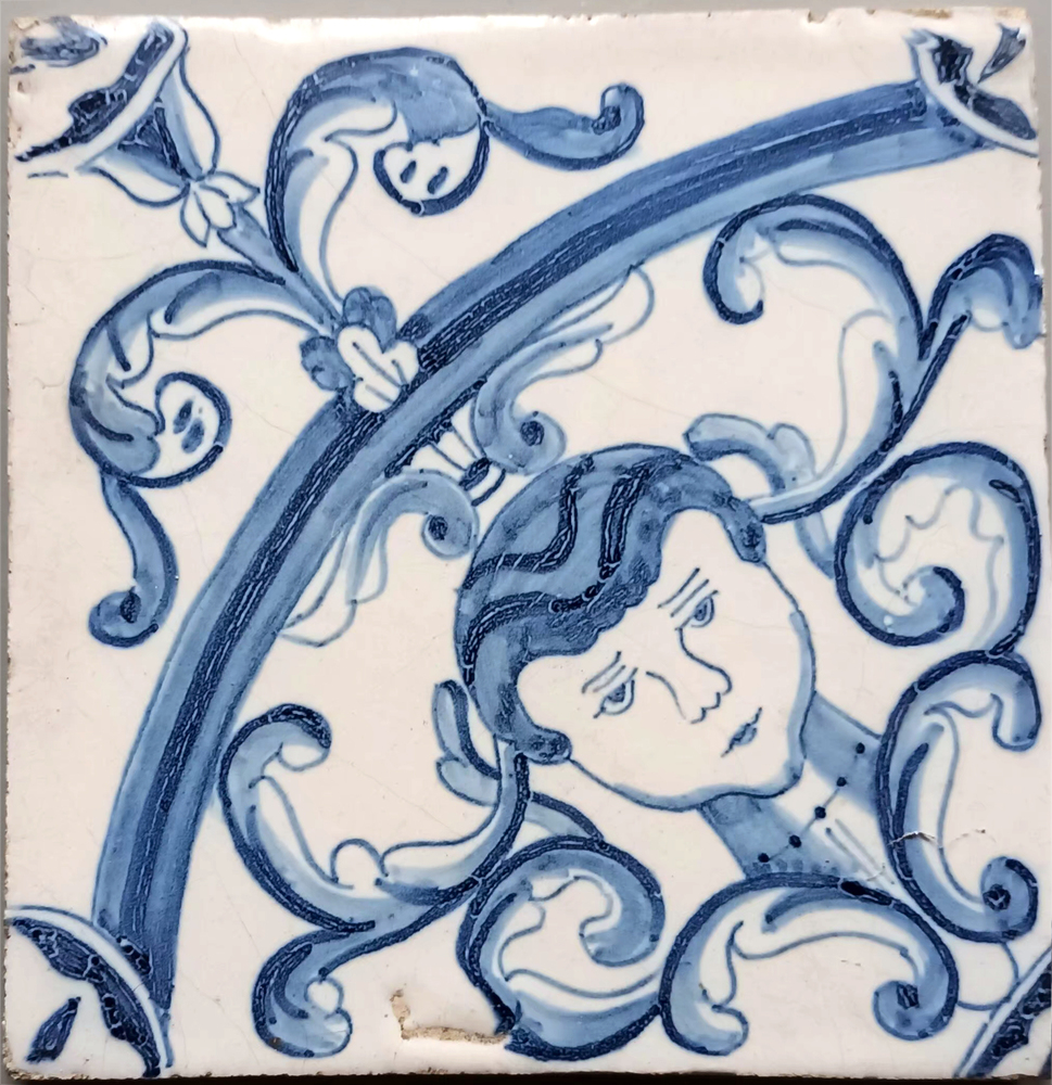 tegel van aardewerk met tinglazuur, voorstellende: t...