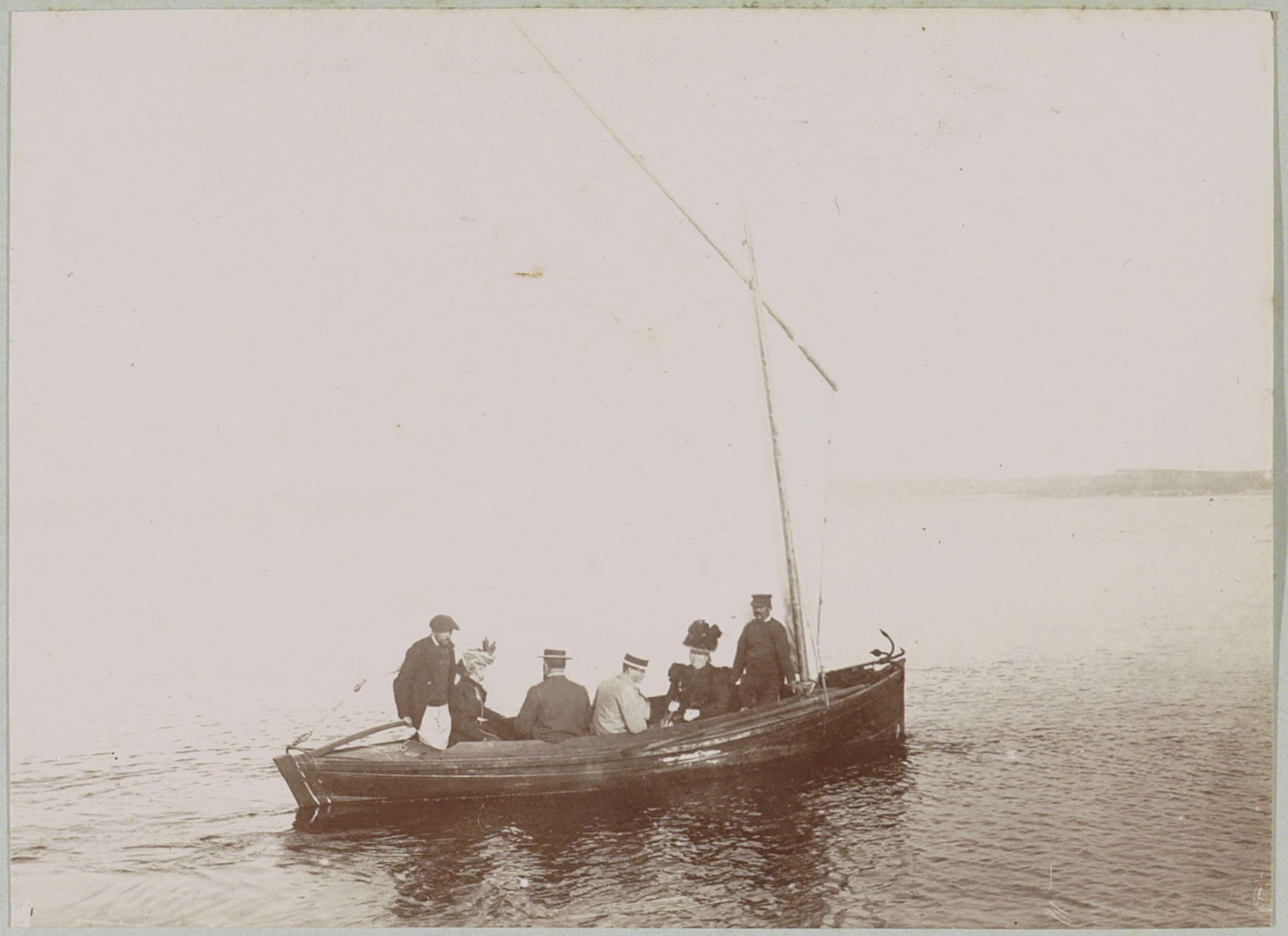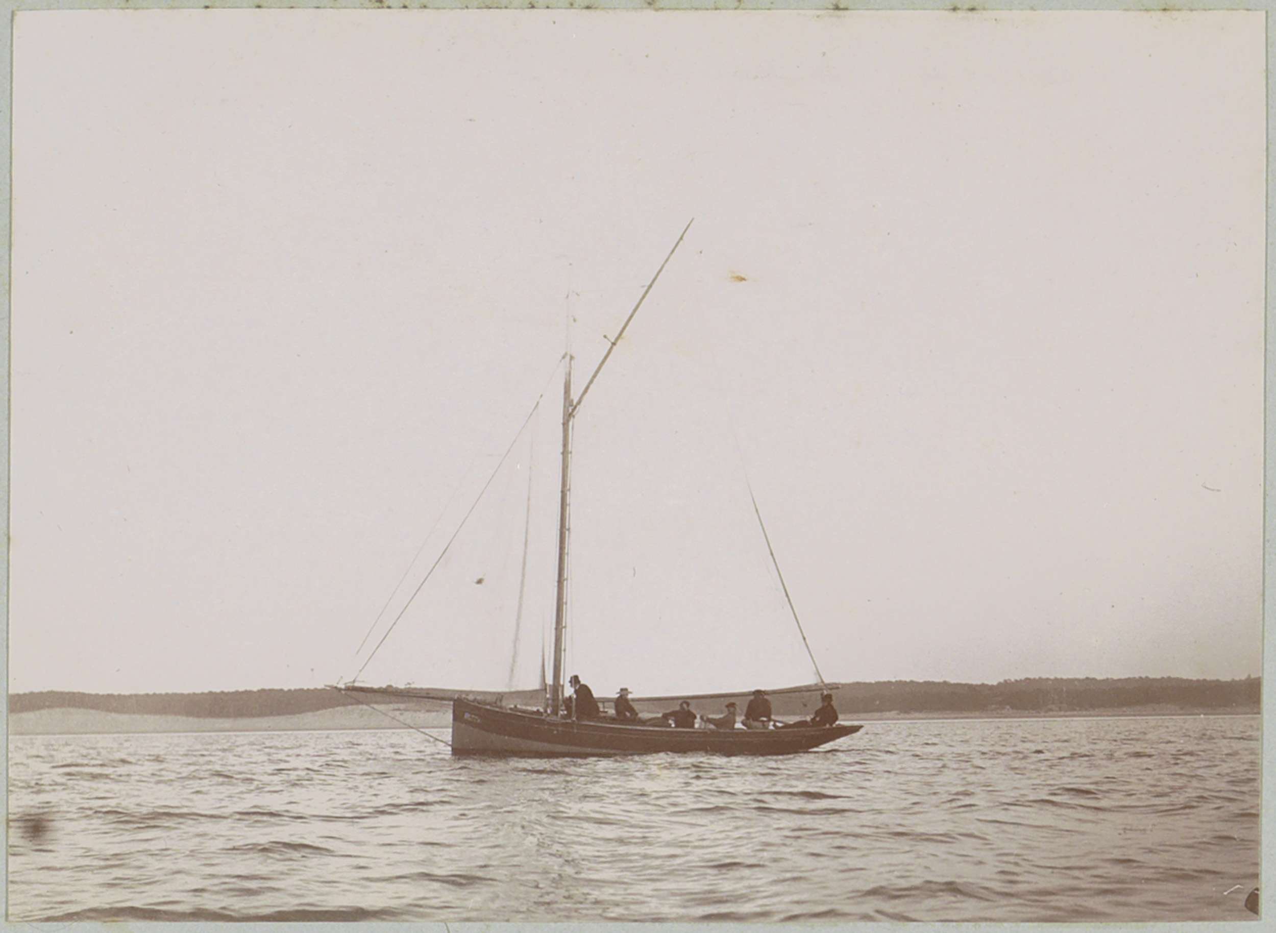 Gezelschap in een zeilboot, vermoedelijk ter hoogte ...