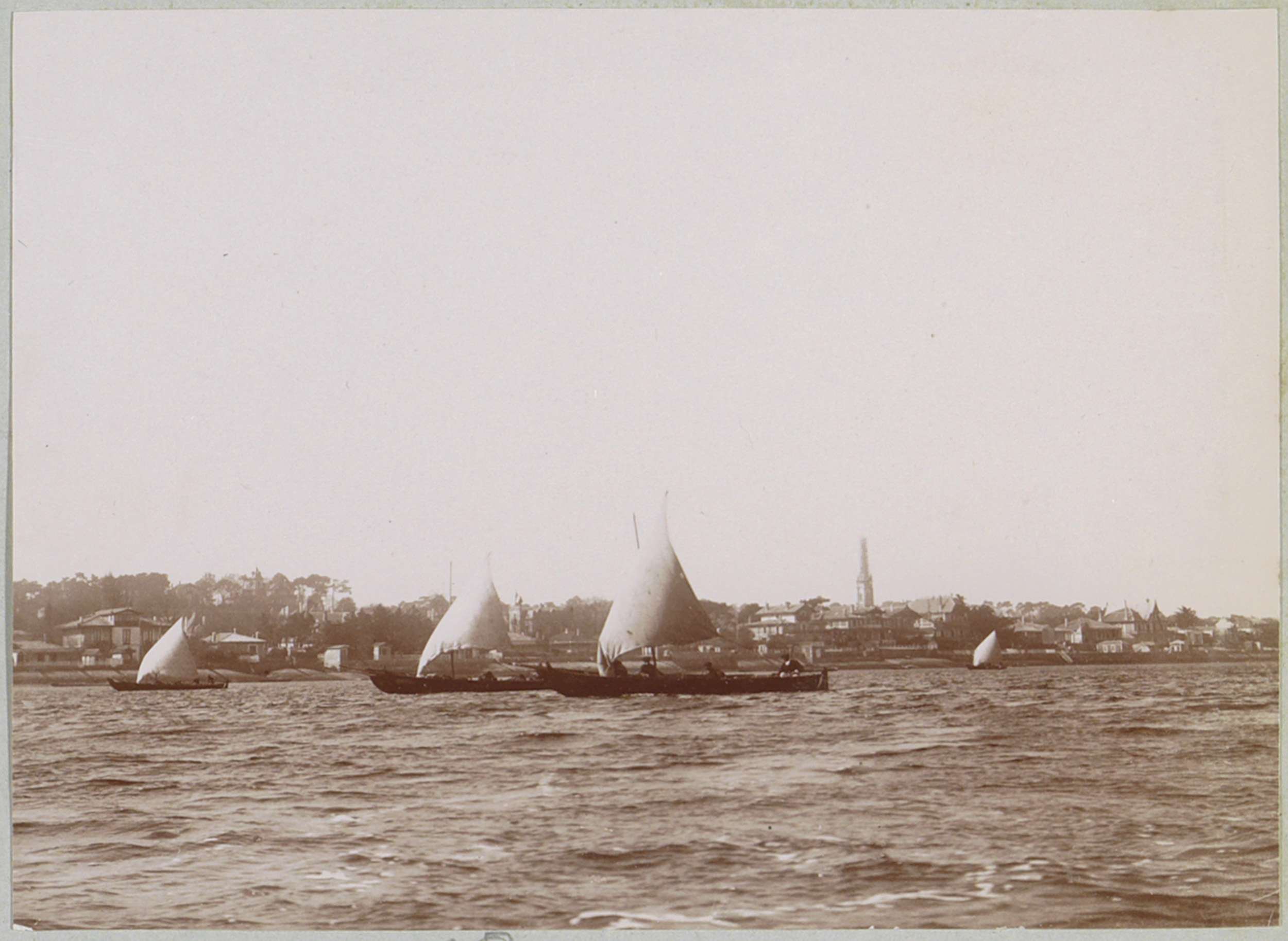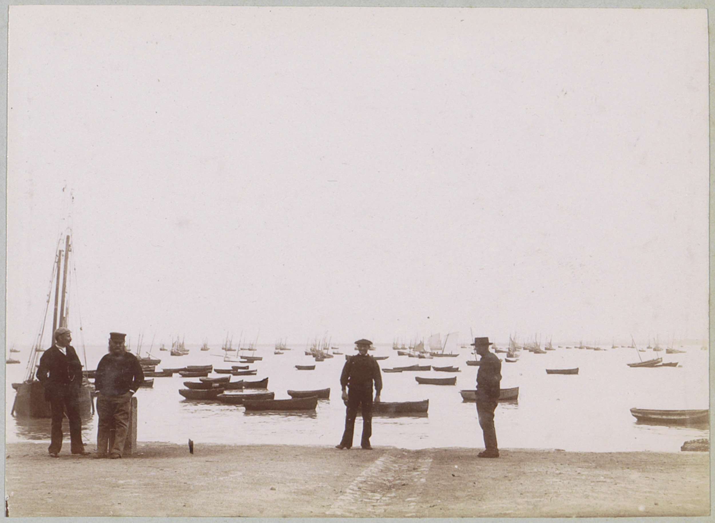 Vissersschepen voor de kust van (vermoedelijk) Arcachon