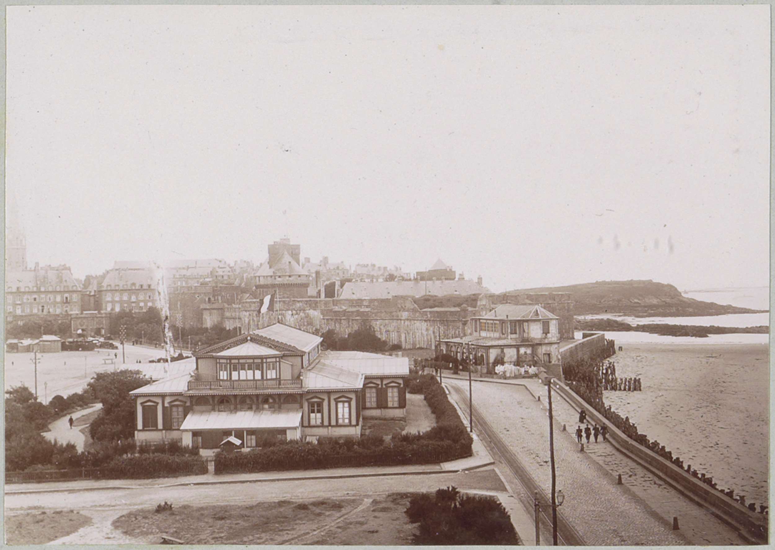Gezicht op gebouwen bij het strand van Saint-Malo