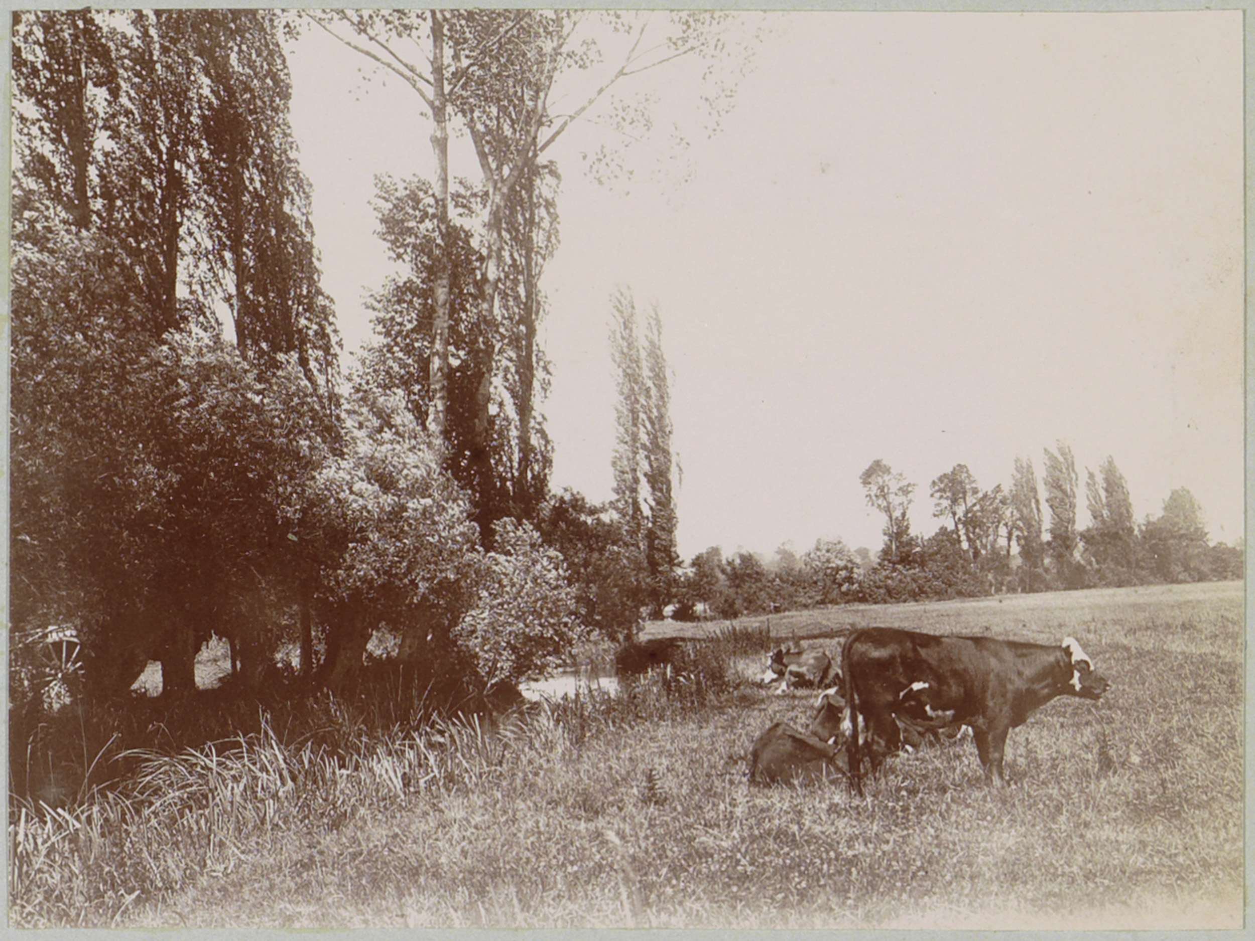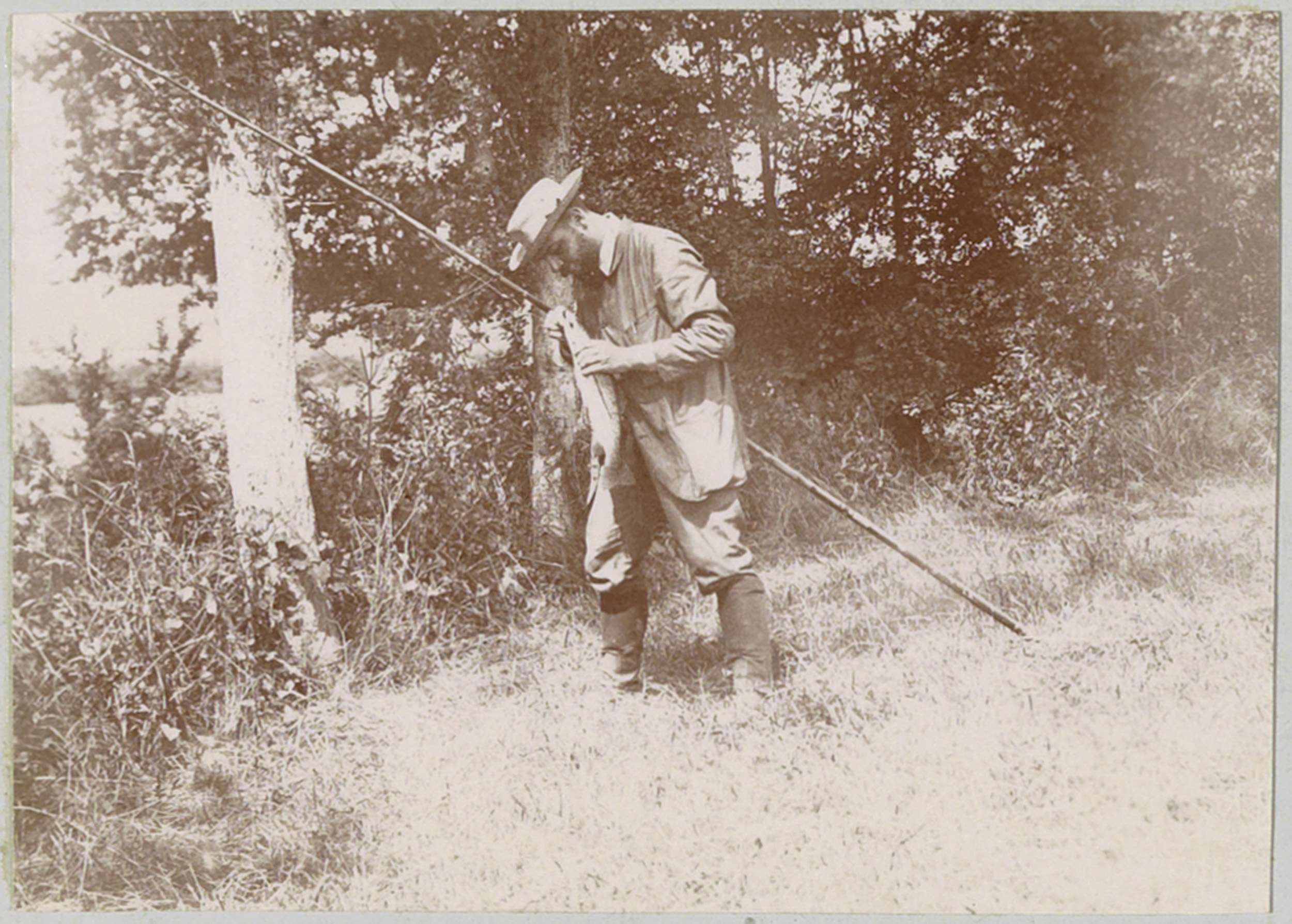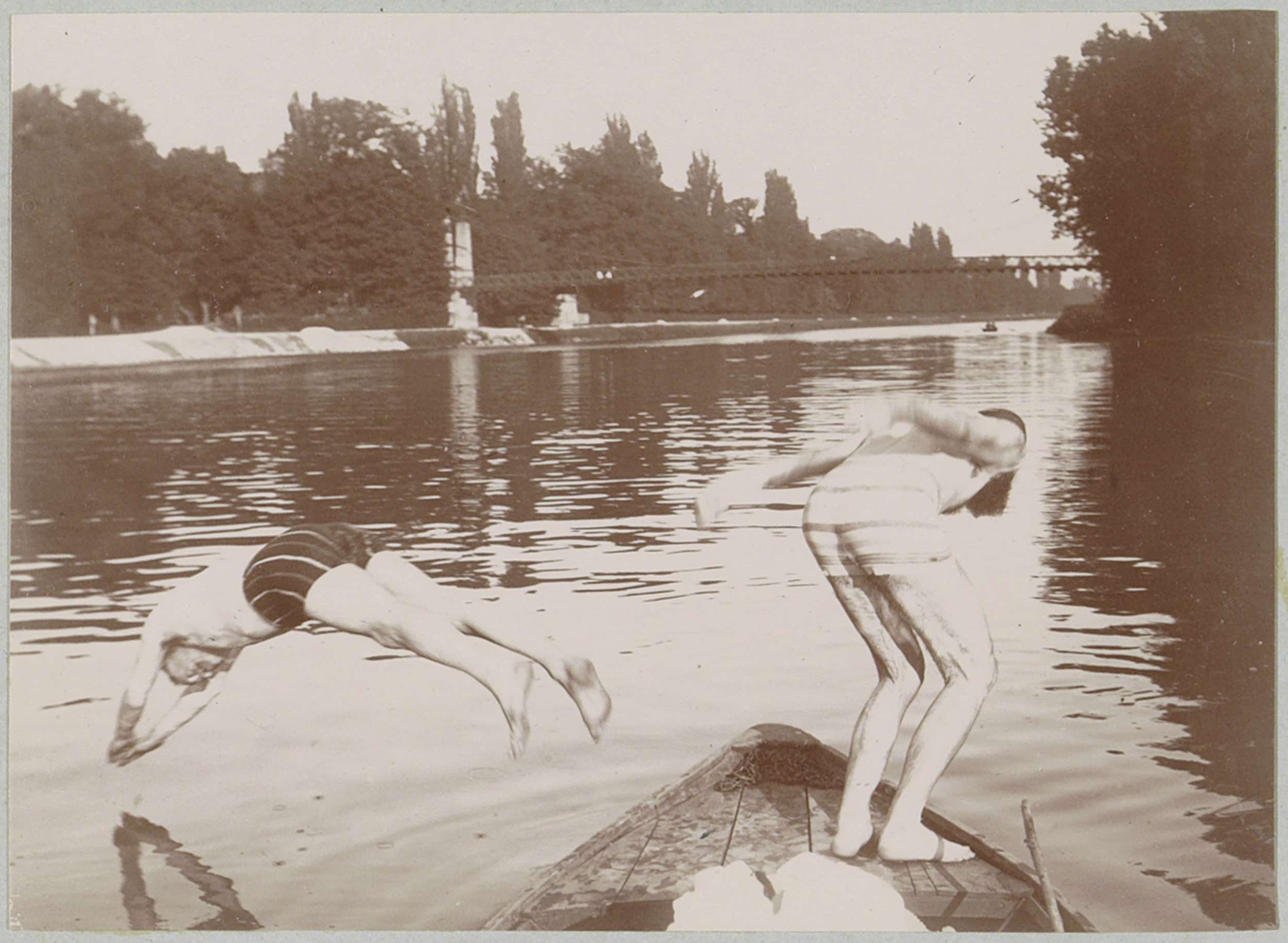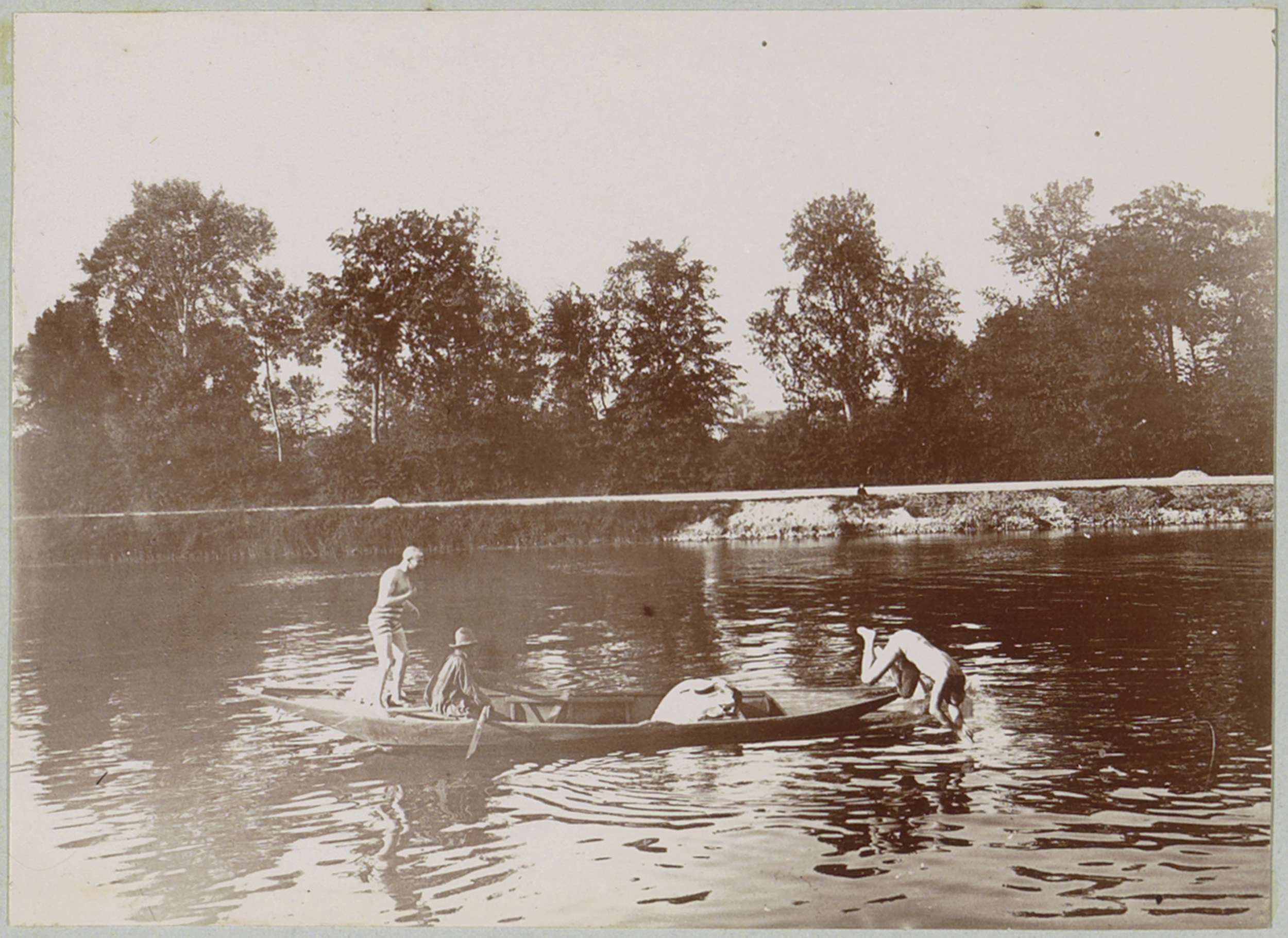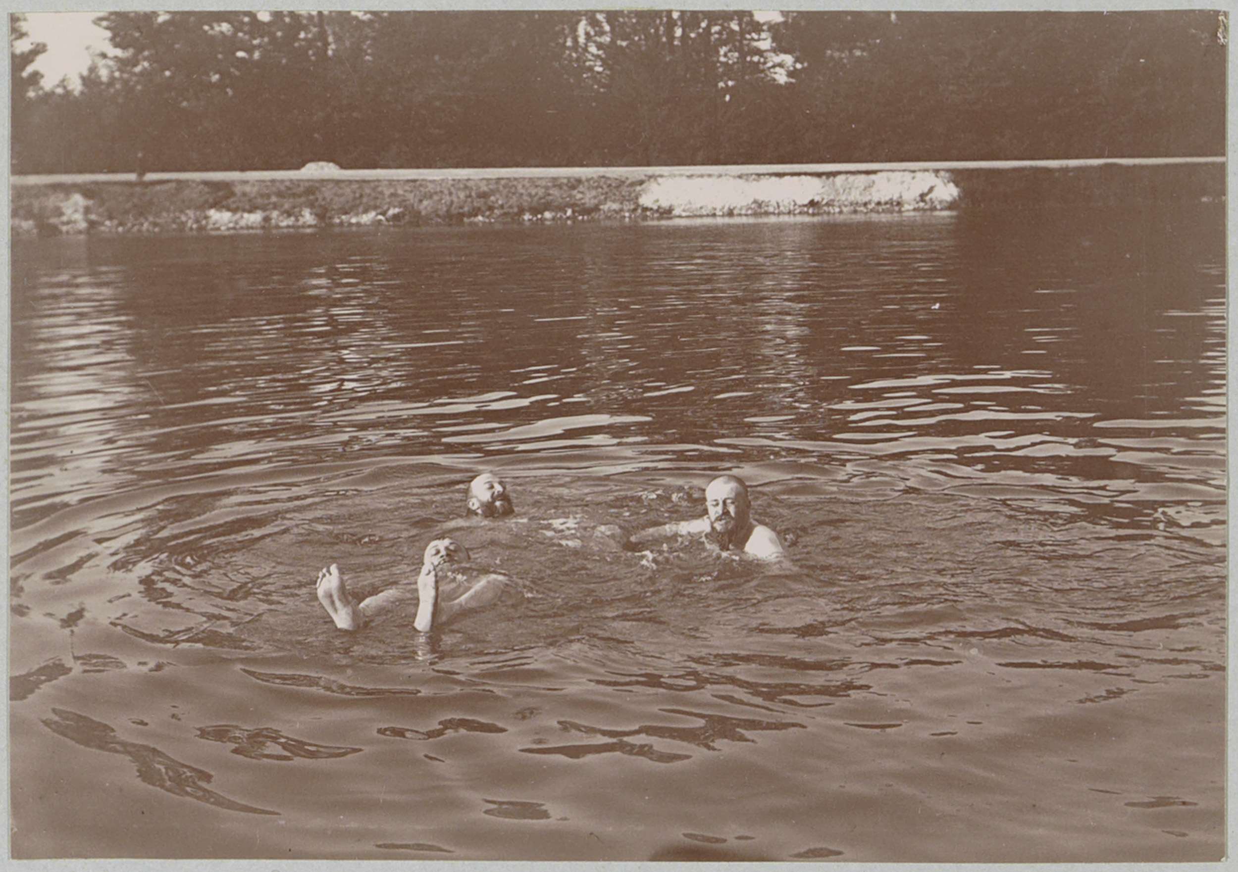 Zwempartij van drie mannen in een rivier bij Pontoise