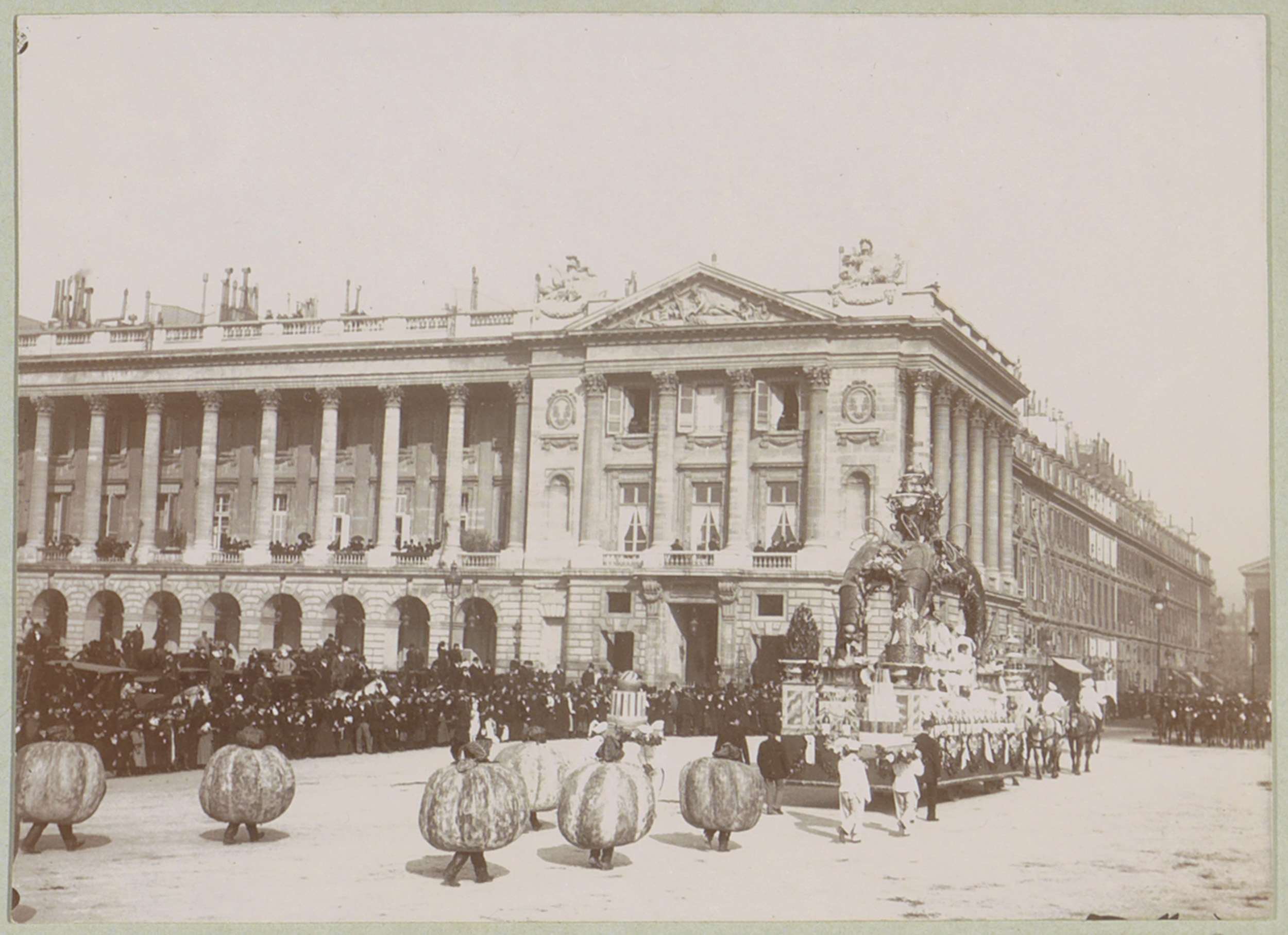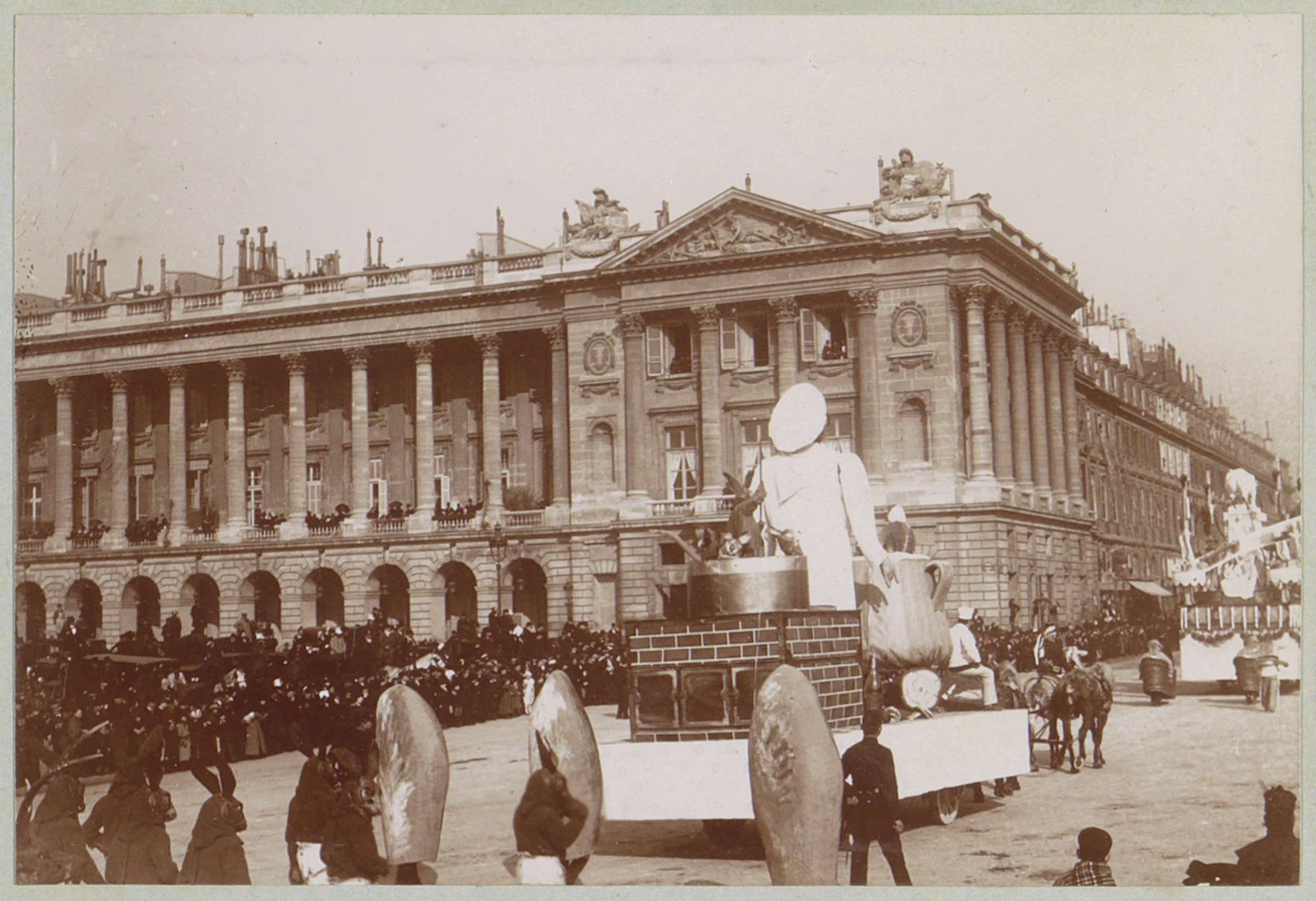 Optocht met praalwagens tijdens Mardi Gras op een pl...