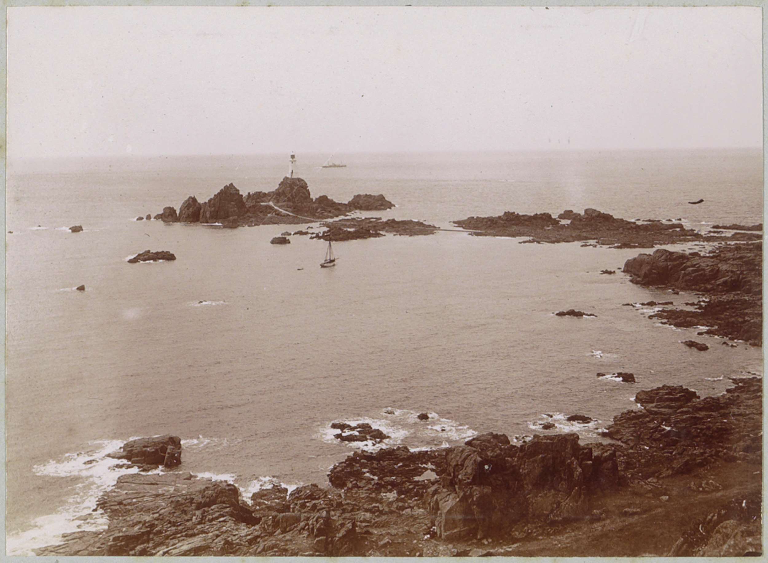 Gezicht op rotsformaties en de vuurtoren La Corbière...
