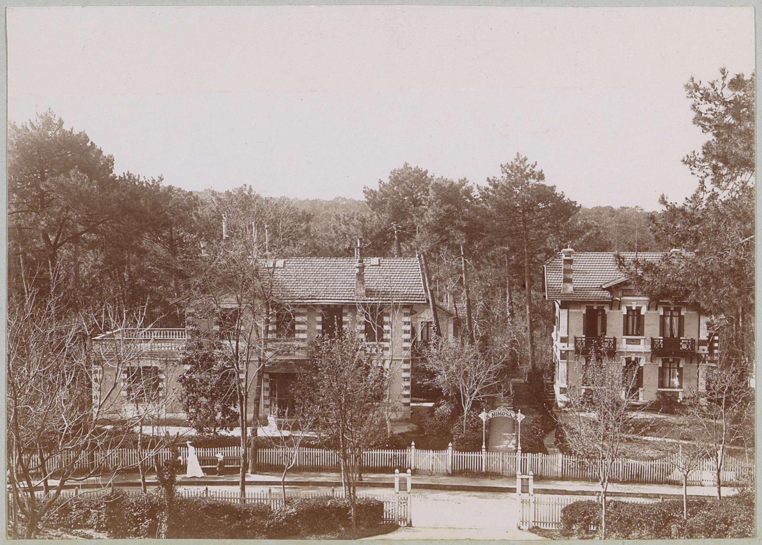 Gezicht op twee villa's, vermoedelijk in Le Moulleau...